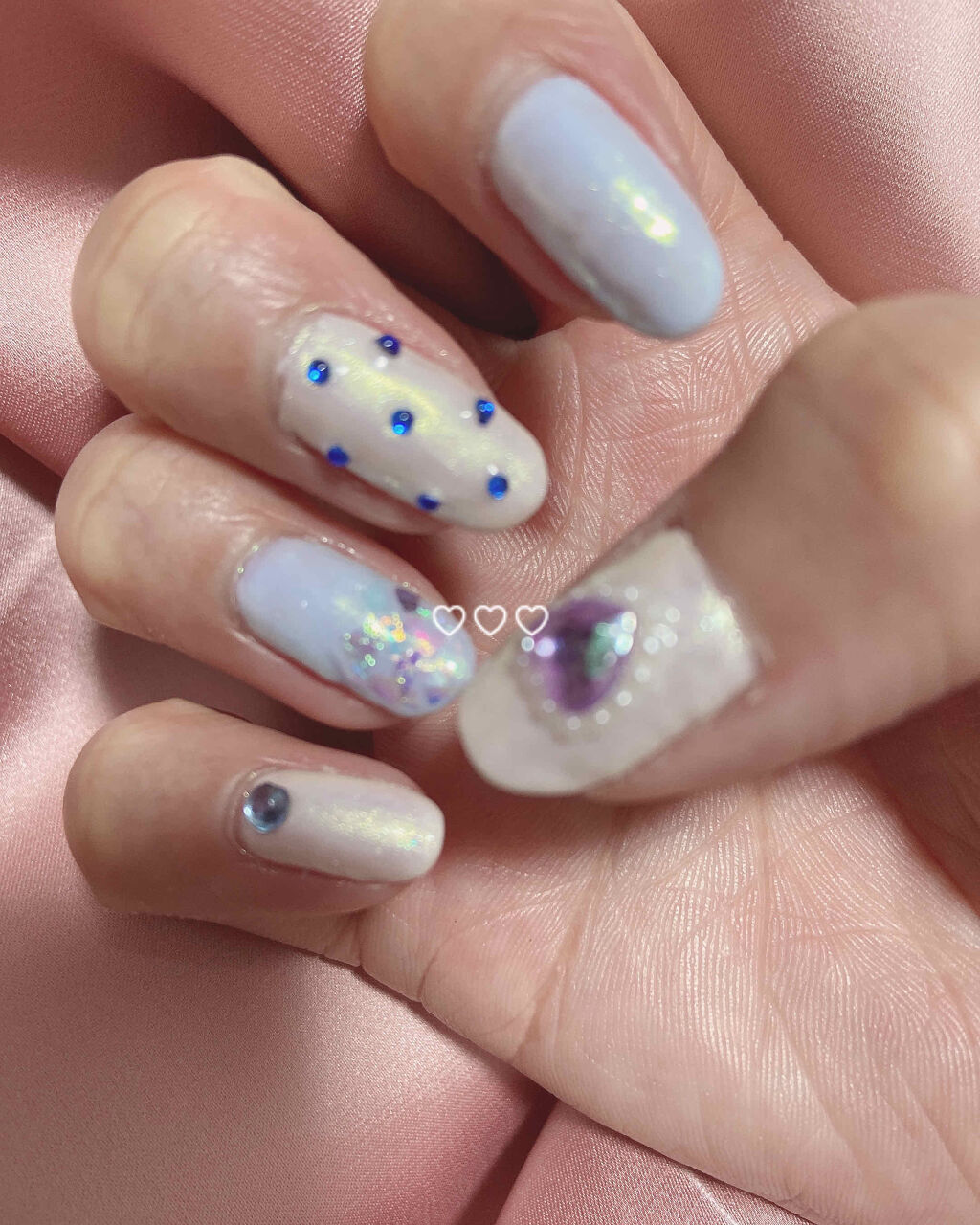ネイル工房さんで半額セールしてたので購入してしまった☺ちょうちょのホロがとてもかわいい🦋デザインはシンプルだけどキラキラだから存在感ある✨そして何より塗りやすい〜!ボトルタイプを購入したからすぐ塗れて、時間かからないのがとても最高です👍私の場...