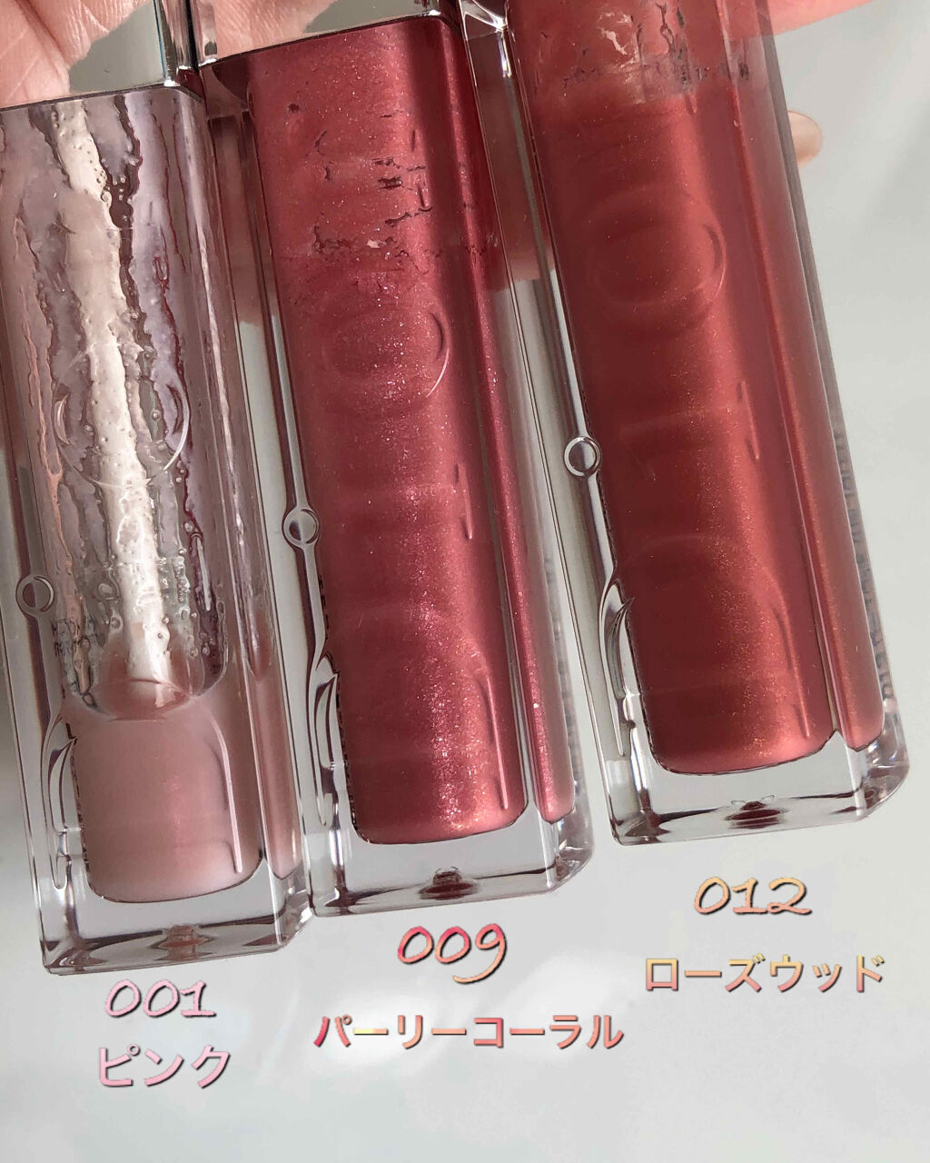 マキシマイザーの保湿感は言わずもがなバッチリで、プルプル感、スースー感大好き 012ローズウッドがはちゃめちゃに可愛い!!! ピンクベージュにゴールドのラメがチラチラと入ってる 多幸感抜群だし、バブみもある👶🏻💕 可愛い仕上がりになる