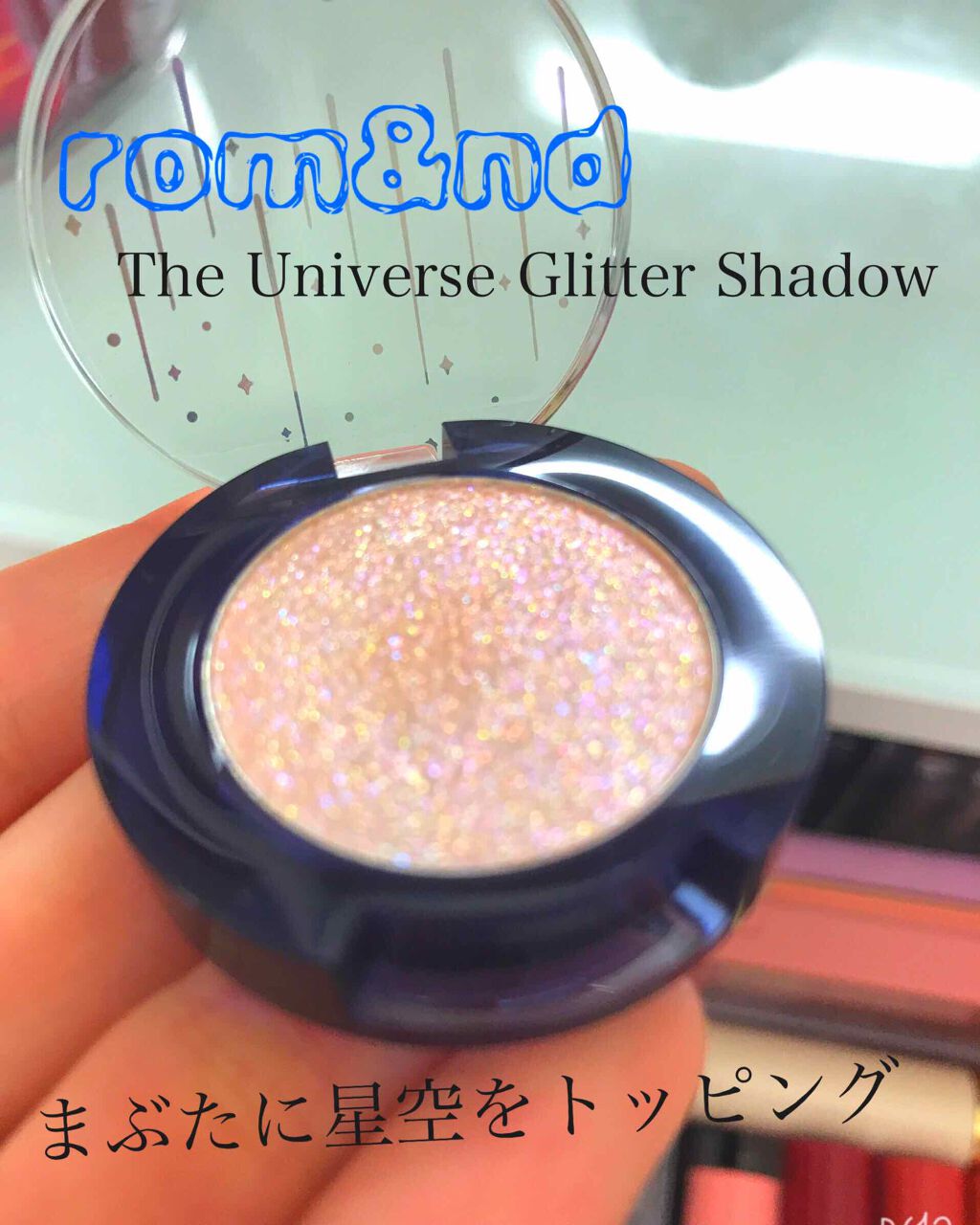 重ね付け・涙袋にもおすすめ💖rom&ndザユニバースグリッターシャドウ02ホワイトホール¥1,100(税込)ほんのりピンクみたいな可愛い見た目をしてるんだけど、まぶたに付けるとシルバー系の煌めきを見せてくれて、とっても爽やか✨こんなにラメがぎ...