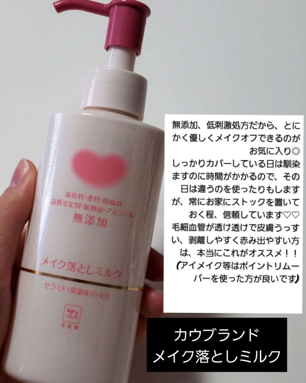 \敏感な時でも使える😳💭/カウブランド無添加メイク落としミルクカウブランド無添加のクレンジングミルク🤍🤍これほんっとに大好きで何回もリピしてる!わたしは花粉で乾燥したり、季節の変わり目によく肌が敏感になっちゃうんだけど、、そんな時にこのクレン...