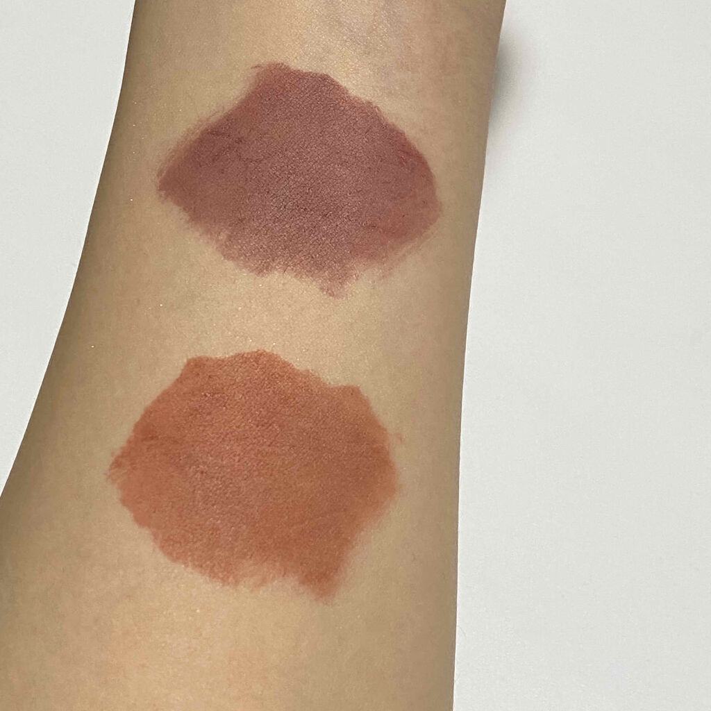 - <M1 マホガニー> ジメチコン、(ジメチコン/ビニルジメチコン)クロスポリマー、水、グリセリン、トリイソステアリン酸ポリグリセリル-2、セチルPEG/PPG-10/1ジメチコン、シクロペンタシロキサン、ペンチレングリコール、メチルトリメチコン、リンゴ酸ジイソステアリル、(アクリル酸ブチル/アクリル酸ヒドロキシプロピルジメチコン)コポリマー、イソドデカン、フェノキシエタノール、トリメチルシロキシケイ酸、(アクリル酸グリセリル/アクリル酸)コポリマー、マイカ、シリカ、ポリプロピルシルセスキオキサン、カプリリルグリコール、1,2-ヘキサンジオール、プロパンジオール、香料、エチルヘキシルグリセリン、水酸化Al、ジメチルシリル化シリカ、ダイウイキョウ果実エキス、メチコン、ヤシ油、アルガニアスピノサ核油、ワサビノキ種子油、シア脂、ハチミツエキス、BG、酸化チタン、酸化鉄、赤104(1)、赤202、黄5、青1 <M2 ジェインチリー> ジメチコン、(ジメチコン/ビニルジメチコン)クロスポリマー、水、グリセリン、トリイソステアリン酸ポリグリセリル-2、セチルPEG/PPG-10/1ジメチコン、シクロペンタシロキサン、ペンチレングリコール、リンゴ酸ジイソステアリル、メチルトリメチコン、(アクリル酸ブチル/アクリル酸ヒドロキシプロピルジメチコン)コポリマー、イソドデカン、フェノキシエタノール、トリメチルシロキシケイ酸、(アクリル酸グリセリル/アクリル酸)コポリマー、マイカ、シリカ、ポリプロピルシルセスキオキサン、カプリリルグリコール、1,2-ヘキサンジオール、香料、プロパンジオール、エチルヘキシルグリセリン、水酸化Al、ジメチルシリル化シリカ、ダイウイキョウ果実エキス、メチコン、ワサビノキ種子油、シア脂、ヤシ油、アルガニアスピノサ核油、ハチミツエキス、BG、酸化チタン、酸化鉄、赤104(1)、赤202、黄4、黄5、青1 <M3 スパイスブリック> ジメチコン、(ジメチコン/ビニルジメチコン)クロスポリマー、水、グリセリン、トリイソステアリン酸ポリグリセリル-2、セチルPEG/PPG-10/1ジメチコン、シクロペンタシロキサン、ペンチレングリコール、メチルトリメチコン、(アクリル酸ブチル/アクリル酸ヒドロキシプロピルジメチコン)コポリマー、イソドデカン、フェノキシエタノール、トリメチルシロキシケイ酸、(アクリル酸グリセリル/アクリル酸)コポリマー、マイカ、シリカ、ポリプロピルシルセスキオキサン、カプリリルグリコール、リンゴ酸ジイソステアリル、1,2-ヘキサンジオール、香料、プロパンジオール、水酸化Al、エチルヘキシルグリセリン、ジメチルシリル化シリカ、ダイウイキョウ果実エキス、メチコン、ワサビノキ種子油、シア脂、ヤシ油、アルガニアスピノサ核油、ハチミツエキス、BG、酸化チタン、酸化鉄、赤104(1)、黄4、黄5 <M4 ビアンローズ> ジメチコン、(ジメチコン/ビニルジメチコン)クロスポリマー、水、グリセリン、セチルPEG/PPG-10/1ジメチコン、トリイソステアリン酸ポリグリセリル-2、シクロペンタシロキサン、リンゴ酸ジイソステアリル、ペンチレングリコール、メチルトリメチコン、(アクリル酸ブチル/アクリル酸ヒドロキシプロピルジメチコン)コポリマー、イソドデカン、フェノキシエタノール、トリメチルシロキシケイ酸、(アクリル酸グリセリル/アクリル酸)コポリマー、マイカ、シリカ、ポリプロピルシルセスキオキサン、カプリリルグリコール、1,2-ヘキサンジオール、香料、プロパンジオール、エチルヘキシルグリセリン、水酸化Al、ジメチルシリル化シリカ、ダイウイキョウ果実エキス、メチコン、ワサビノキ種子油、シア脂、ヤシ油、アルガニアスピノサ核油、ハチミツエキス、BG、酸化チタン、酸化鉄、赤202、赤227、黄4、青1 <M5 ヘイキャンディー> ジメチコン、(ジメチコン/ビニルジメチコン)クロスポリマー、水、グリセリン、トリイソステアリン酸ポリグリセリル-2、セチルPEG/PPG-10/1ジメチコン、シクロペンタシロキサン、ペンチレングリコール、メチルトリメチコン、(アクリル酸ブチル/アクリル酸ヒドロキシプロピルジメチコン)コポリマー、イソドデカン、フェノキシエタノール、トリメチルシロキシケイ酸、リンゴ酸ジイソステアリル、(アクリル酸グリセリル/アクリル酸)コポリマー、マイカ、シリカ、ポリプロピルシルセスキオキサン、カプリリルグリコール、1,2-ヘキサンジオール、プロパンジオール、香料、エチルヘキシルグリセリン、ジメチルシリル化シリカ、ダイウイキョウ果実エキス、メチコン、アルガニアスピノサ核油、シア脂、ヤシ油、ワサビノキ種子油、ハチミツエキス、BG、酸化鉄、赤104(1)、赤202、黄5 <M6 トニールビー> ジメチコン、(ジメチコン/ビニルジメチコン)クロスポリマー、水、グリセリン、トリイソステアリン酸ポリグリセリル-2、セチルPEG/PPG-10/1ジメチコン、シクロペンタシロキサン、ペンチレングリコール、メチルトリメチコン、(アクリル酸ブチル/アクリル酸ヒドロキシプロピルジメチコン)コポリマー、