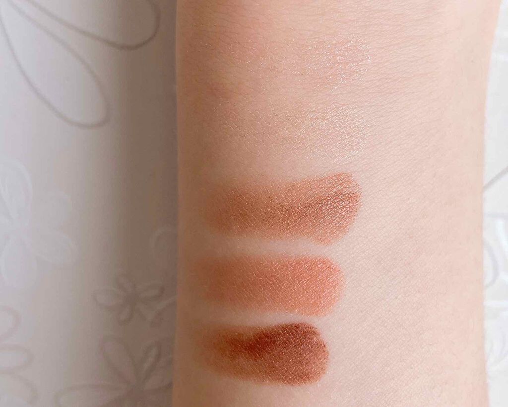 1つ880円で手に取りやすい価格とサイズ、たくさん集めたいコスメオタクとしてはとても嬉しいです🥰 サイズ感は通常サイズよりふた周りくらい小さくてポーチに入れても邪魔になりません リップモンスターなので当たり前の落ちなさ…!! ラメ感もしっかり残るのでいいですね〜✨ ブラウンリップを使ってみたいけど…と思ってるブルベさんに是非挑戦してみてほしい色です。 ブラウンで透け感がありベタっとつかないのでブラウンリップ初心者さんにも。 青ラメがザクザクで比較的ブルベでも使えるブラウンリップかなと思いました フラッシュピンクがどんな色かが分からない🤣 The・青みピンクでは無く少し黄みも感じられる色で私はベビーピンクのように思いました ピンクが好きなら好きな色かなーと。 1番ラメ感が控えめかなと。 1番ラメ感が強くて青ラメザクザク😍✨ 青ラメ好きさんこっちですよーと言いたくなる色です! 発色は1番淡いのでなにかの上に重ね塗りするのがいいかな〜 濃いめのリップが好きなのでこれだけならちょっと物足りなかったです😂