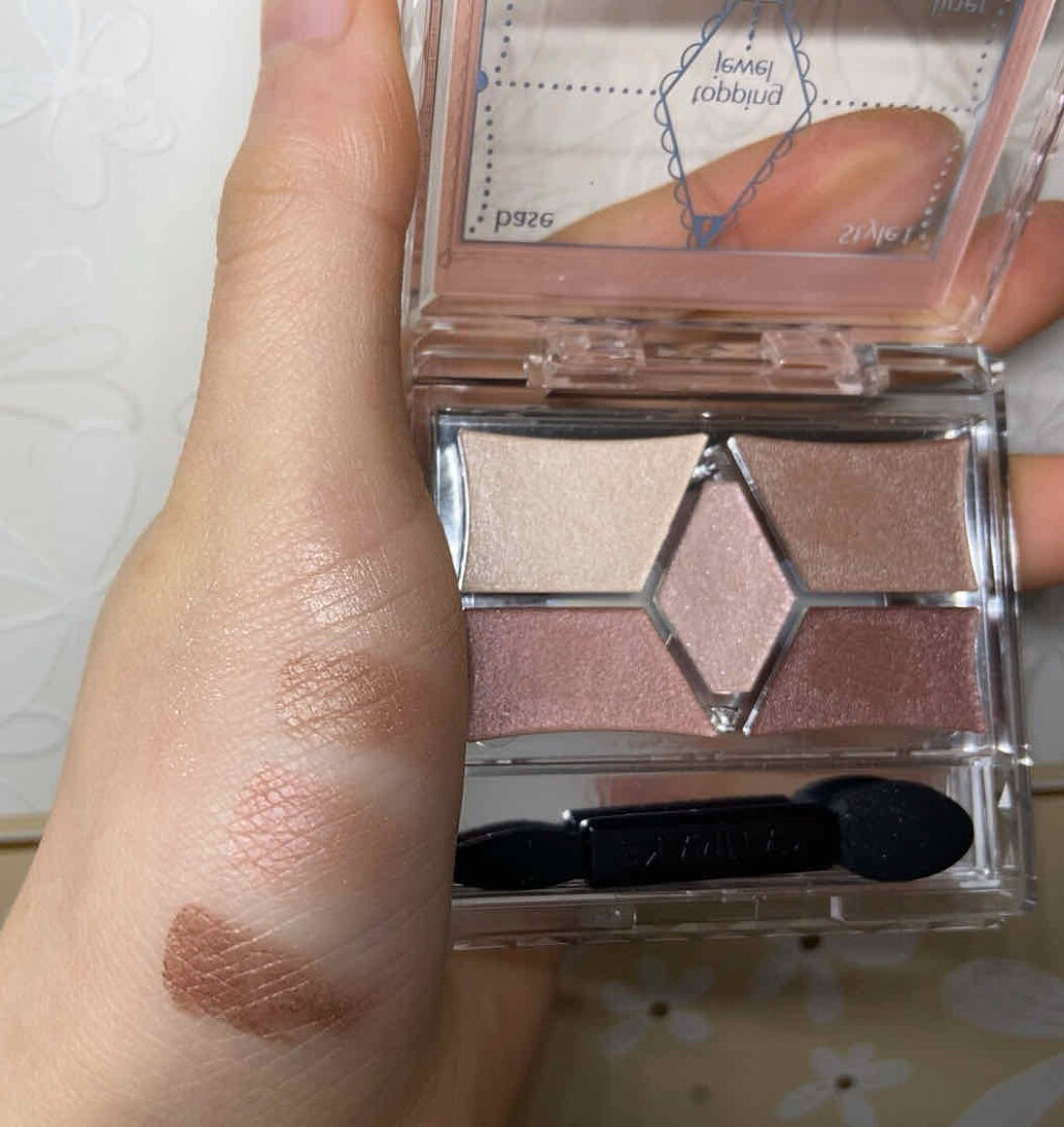 質感は左上と中央と右下がマット、左下がパール、右上がラメの構成 右上はチラチラ輝く砂糖菓子のような多色ラメ 底色はなし このパレットの醍醐味は右上の多色ラメかと思います✨✨ 使う色味や範囲によってピンクにもコーラルにもブラウンにも寄せれそうな印象 締め色が締めすぎないのでライトの民に良さそう 限定の花柄のケースも買ったけど布で汚れたら落ちなさそうな質感だったので使うかは不明… 予約ではどこも即終了で買えないかと思ってたら公式オンラインショップで無事に買えました🤭💕