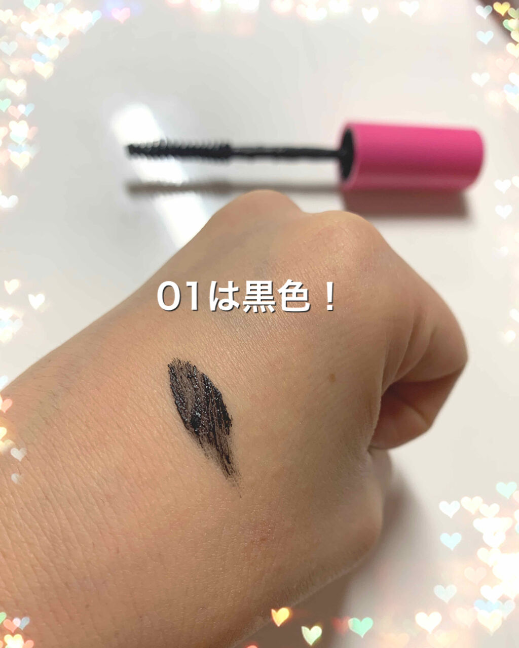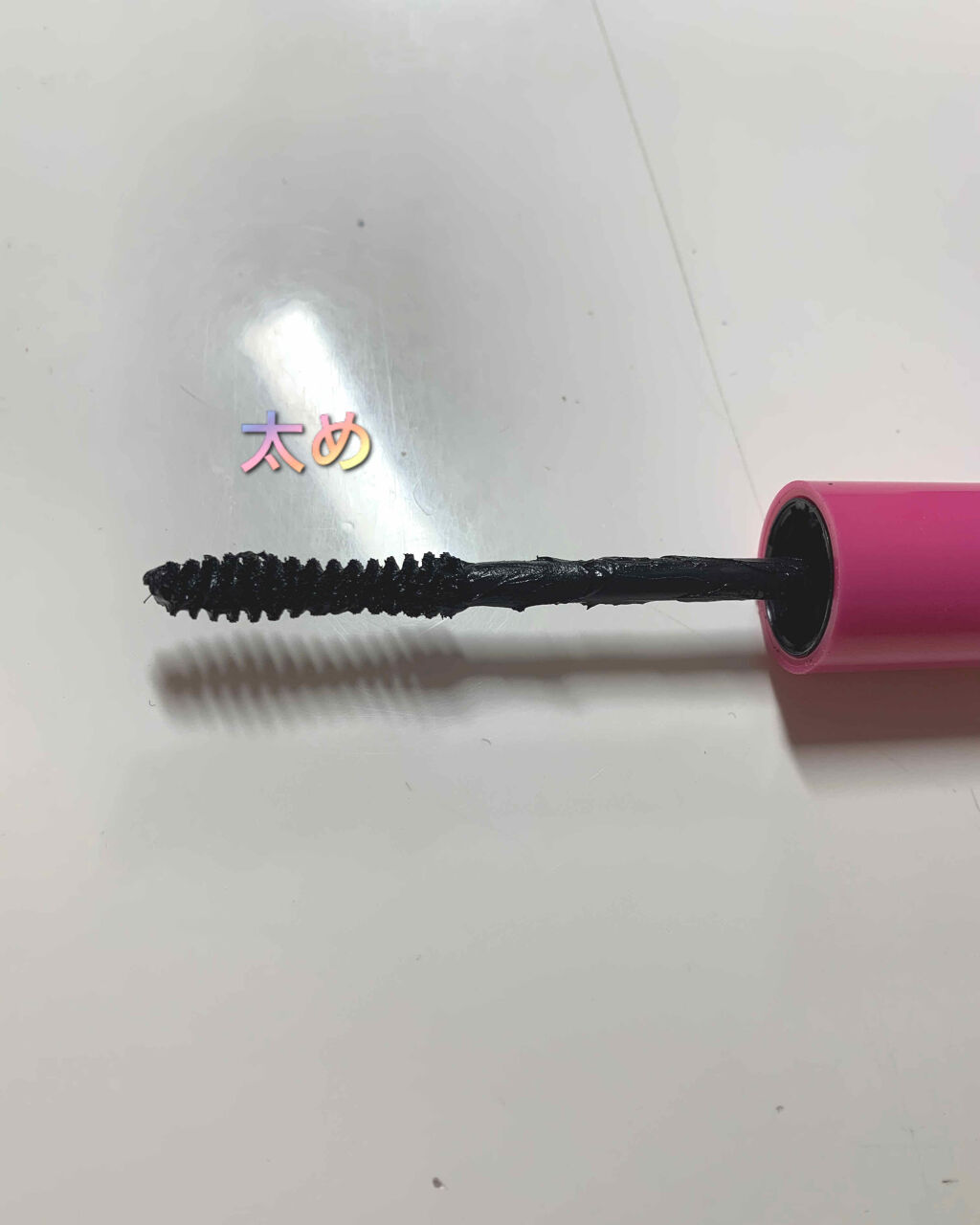 漆黒みたいな真っ黒 そこは良いと思いました!! ブラシが太めなので、細部まで塗りにくいのと瞼に付きやすいと感じました😖 ボリュームはでるけど、綺麗に仕上げるのが難しかったです。 ダマになりやすいと感じました。