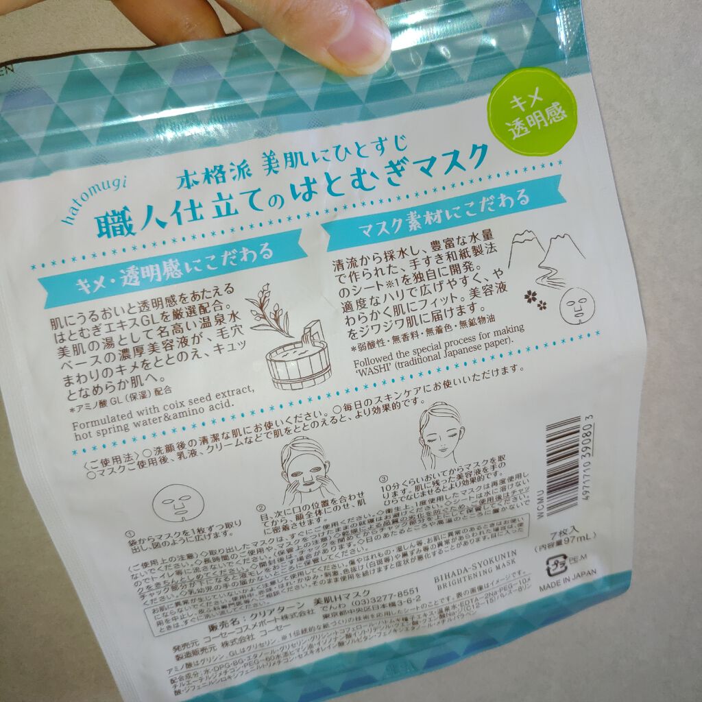 - 肌にうるおいと透明感をあたえるハトムギエキスを厳選配合。 手すき和紙製法の国産やわらかシートが肌にフィットし、毛穴もキュッとした透明感のある肌に導く職人仕立ての自然派マスクです。