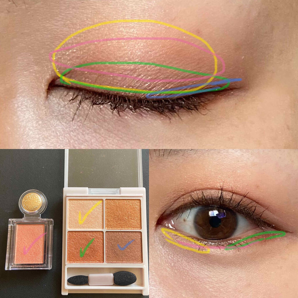 涙袋といえば、マジョマジョのゴージャス姉妹というくらい優秀で、何個もリピ済み 夕方までしっかり残る&くすまない、忙しいときは、影をつけなくても立体的に仕上がる!✨ 高発色だけど濃さを調節しやすいので、これ単色で上下のアイシャドウを完了できる使い勝手の良さも気に入りました◎