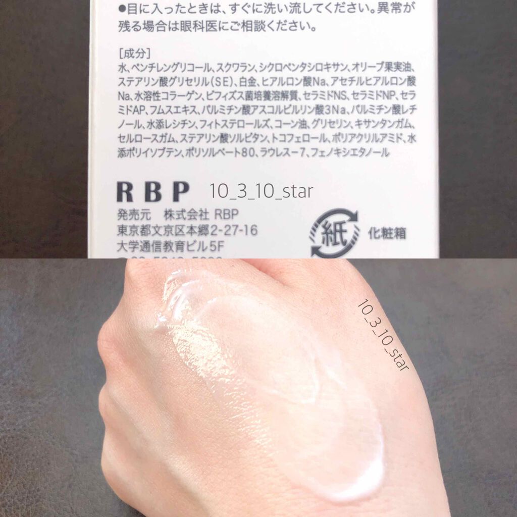 - RBP独自の新技術“ナノモイストバリア構造”が肌表面にしっかり密着し、長時間バリア膜を張ります。またセルロースナノファイバー独自のスルスルとした心地よい肌感覚で、しっとり潤うのにべたつかないテクスチャーが特徴。ヒアルロン酸・セラミド・コラーゲンの保湿成分が、潤いを角質層にしっかり浸透させ、ナノモイストバリア構造が潤いを閉じ込めます。また生活習慣の乱れにより失われがちなミネラルやビフィズス菌も配合。外的刺激から肌を守り、健康的で生き生きとした素肌へと導きます。
