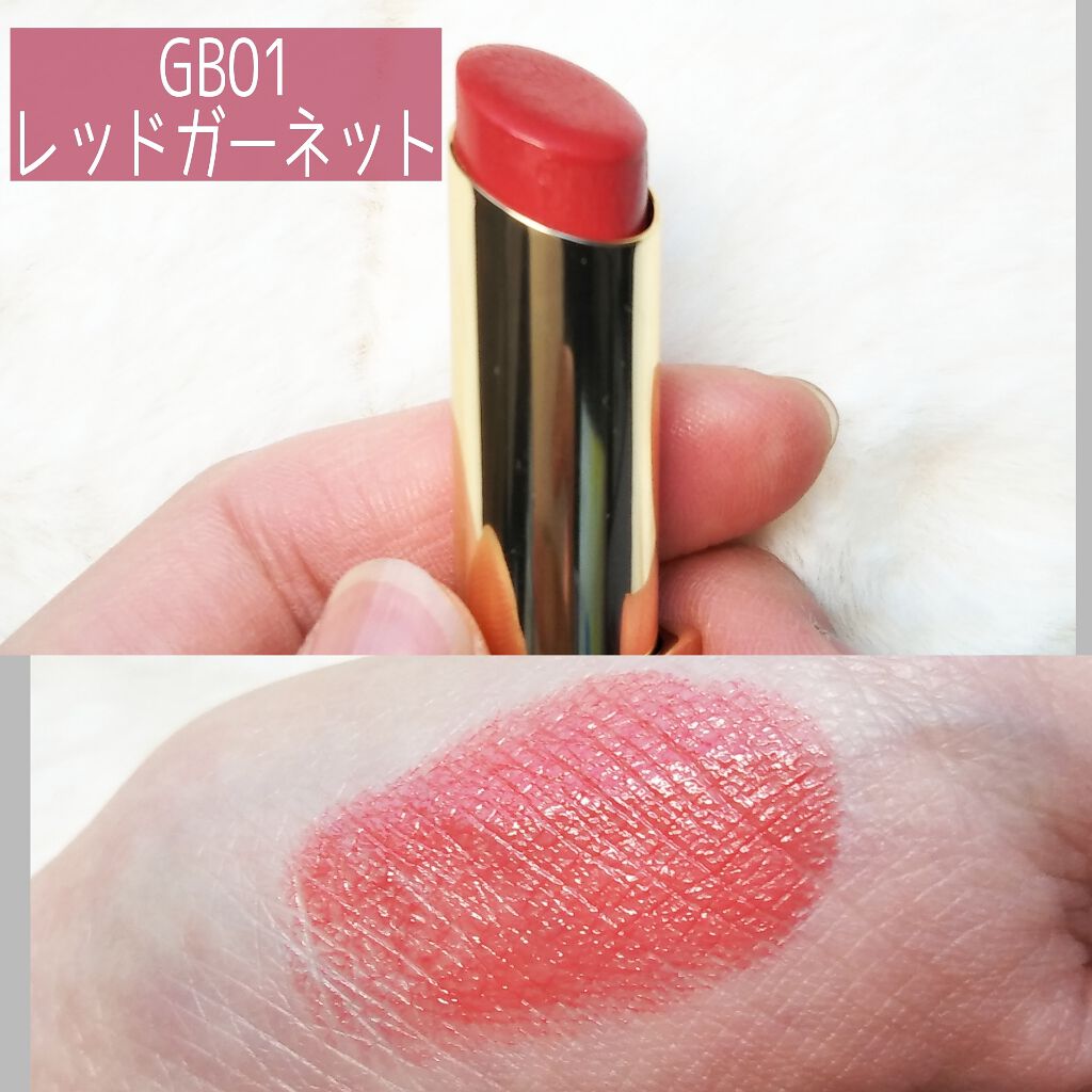 - <GB03 アプリコットシナモン> リンゴ酸ジイソステアリル、テトラエチルヘキサン酸ペンタエリスリチル、トリイソステアリン酸ポリグリセリル-2、水添ポリイソブテン、ヒドロキシアルキル(C16-18)ヒドロキシダイマージリノレイルエーテル、ワセリン、ポリエチレン、キャンデリラロウエステルズ、マイクロクリスタリンワックス、水添ポリデセン、アルガニアスピノサ核油、セラミドEOP、セラミドNG、セラミドNP、セラミドAP、水添レシチン、ダイズステロール、(HDI/トリメチロールヘキシルラクトン)クロスポリマー、カプリル酸グリセリル、トコフェロール、硫酸Ba、(+/-) シリカ、ラウロイルリシン、黄4、黄5、酸化チタン、酸化鉄、水酸化Al、青1、赤104(1)、赤201、赤202 <GB06 ショコラベリー> テトラエチルヘキサン酸ペンタエリスリチル、リンゴ酸ジイソステアリル、トリイソステアリン酸ポリグリセリル-2、水添ポリイソブテン、ヒドロキシアルキル(C16-18)ヒドロキシダイマージリノレイルエーテル、ワセリン、ポリエチレン、キャンデリラロウエステルズ、マイクロクリスタリンワックス、水添ポリデセン、アルガニアスピノサ核油、セラミドEOP、セラミドNG、セラミドNP、セラミドAP、水添レシチン、ダイズステロール、(HDI/トリメチロールヘキシルラクトン)クロスポリマー、カプリル酸グリセリル、トコフェロール、硫酸Ba、シリカ、ラウロイルリシン、黄4、黄5、酸化チタン、酸化鉄、水酸化Al、青1、赤201、赤202 <GB08 シークレットモカ> リンゴ酸ジイソステアリル、テトラエチルヘキサン酸ペンタエリスリチル、トリイソステアリン酸ポリグリセリル-2、水添ポリイソブテン、ヒドロキシアルキル(C16-18)ヒドロキシダイマージリノレイルエーテル、ワセリン、ポリエチレン、キャンデリラロウエステルズ、マイクロクリスタリンワックス、水添ポリデセン、アルガニアスピノサ核油、セラミドEOP、セラミドNG、セラミドNP、セラミドAP、(HDI/トリメチロールヘキシルラクトン)クロスポリマー、カプリル酸グリセリル、トコフェロール、フィトステロールズ、水添レシチン、硫酸Ba、(+/-) シリカ、ラウロイルリシン、黄4、黄5、酸化チタン、酸化鉄、水酸化Al、青1、赤104(1)、赤201、赤202 <GB09 セピアモーヴ> リンゴ酸ジイソステアリル、テトラエチルヘキサン酸ペンタエリスリチル、トリイソステアリン酸ポリグリセリル-2、水添ポリイソブテン、ヒドロキシアルキル(C16-18)ヒドロキシダイマージリノレイルエーテル、ワセリン、ポリエチレン、キャンデリラロウエステルズ、マイクロクリスタリンワックス、水添ポリデセン、アルガニアスピノサ核油、セラミドEOP、セラミドNG、セラミドNP、セラミドAP、(HDI/トリメチロールヘキシルラクトン)クロスポリマー、カプリル酸グリセリル、トコフェロール、フィトステロールズ、水添レシチン、硫酸Ba、(+/-) シリカ、ラウロイルリシン、黄4、黄5、酸化チタン、酸化鉄、水酸化Al、青1、赤104(1)、赤201、赤202 <GB11 ポメグラネイト> テトラエチルヘキサン酸ペンタエリスリチル、リンゴ酸ジイソステアリル、トリイソステアリン酸ポリグリセリル-2、水添ポリイソブテン、ヒドロキシアルキル(C16-18)ヒドロキシダイマージリノレイルエーテル、ワセリン、ポリエチレン、キャンデリラロウエステルズ、マイクロクリスタリンワックス、水添ポリデセン、アルガニアスピノサ核油、セラミドEOP、セラミドNG、セラミドNP、セラミドAP、(HDI/トリメチロールヘキシルラクトン)クロスポリマー、カプリル酸グリセリル、トコフェロール、フィトステロールズ、水添レシチン、硫酸Ba、(+/-) シリカ、ラウロイルリシン、黄4、黄5、酸化チタン、酸化鉄、水酸化Al、青1、赤201、赤202 <GB12 ホットカラメル> リンゴ酸ジイソステアリル、テトラエチルヘキサン酸ペンタエリスリチル、トリイソステアリン酸ポリグリセリル-2、水添ポリイソブテン、ヒドロキシアルキル(C16-18)ヒドロキシダイマージリノレイルエーテル、ワセリン、ポリエチレン、キャンデリラロウエステルズ、マイクロクリスタリンワックス、水添ポリデセン、アルガニアスピノサ核油、セラミドEOP、セラミドNG、セラミドNP、セラミドAP、(HDI/トリメチロールヘキシルラクトン)クロスポリマー、カプリル酸グリセリル、トコフェロール、フィトステロールズ、水添レシチン、硫酸Ba、(+/-) シリカ、ラウロイルリシン、黄4、黄5、酸化チタン、酸化鉄、水酸化Al、青1、赤104(1)、赤201、赤202 <GB01 レッドガーネット> リンゴ酸ジイソステアリル、テトラエチルヘキサン酸ペンタエリスリチル、トリイソステアリン酸ポリグリセリル-2、水添ポリイソブテン、ヒドロキシアルキル(C16-18)ヒドロキシダイマージリノレイルエーテル、ワセリン、ポリエチレン、キャンデリラロウエステルズ、マイクロクリスタリンワックス、水添ポリデセン、アルガニアスピノサ核油、セラミドEOP、セラミドNG、セラミドNP、セラミドAP、水添レシチン、ダイズステロール、(HDI/トリメチロールヘキ
