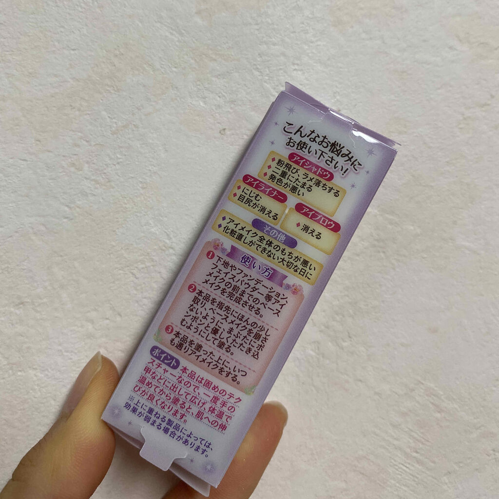 アイシャドウの色持ちや発色UP アイシャドウの前に仕込むだけ! 粉飛びやアイシャドウが二重にたまるのを防止します✨ 時間が経つとにじんだり消えてしまう悩みを解消 米粒くらいの大きさを使います