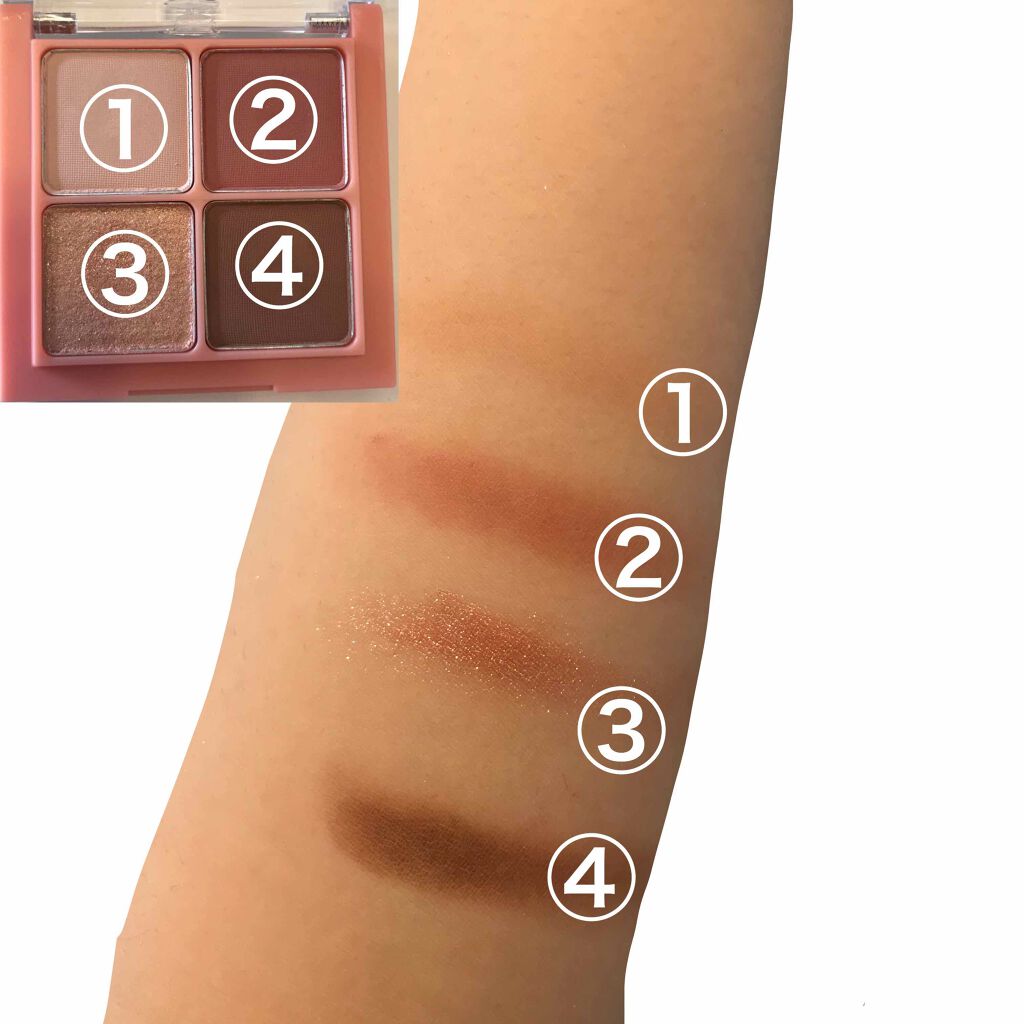 - 可愛いがあふれるドリームシャドウ ①肌に馴染みやすく使いやすい配色 ②クールメイクにピッタリな瞳を演出 ③なめらかで塗り心地の良いマットカラーが立体感を作る ④キラキラと輝く上品なまなざしを作るグリッター