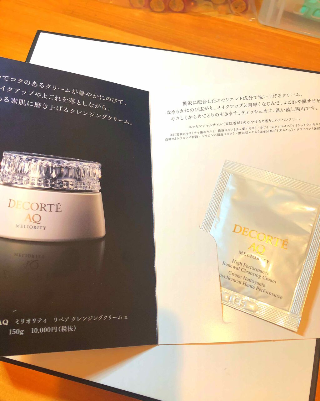 コスメデコルテの導入美容液の定期便についてきたAQミリオリティリペアクレンジングクリームです❣️ずっと使わないで取っておいていたのですがついに使いました😆評判もいいしコスメデコルテだし期待は大❣️テクスチャは濃厚なクリームで伸びはいいかな?途...