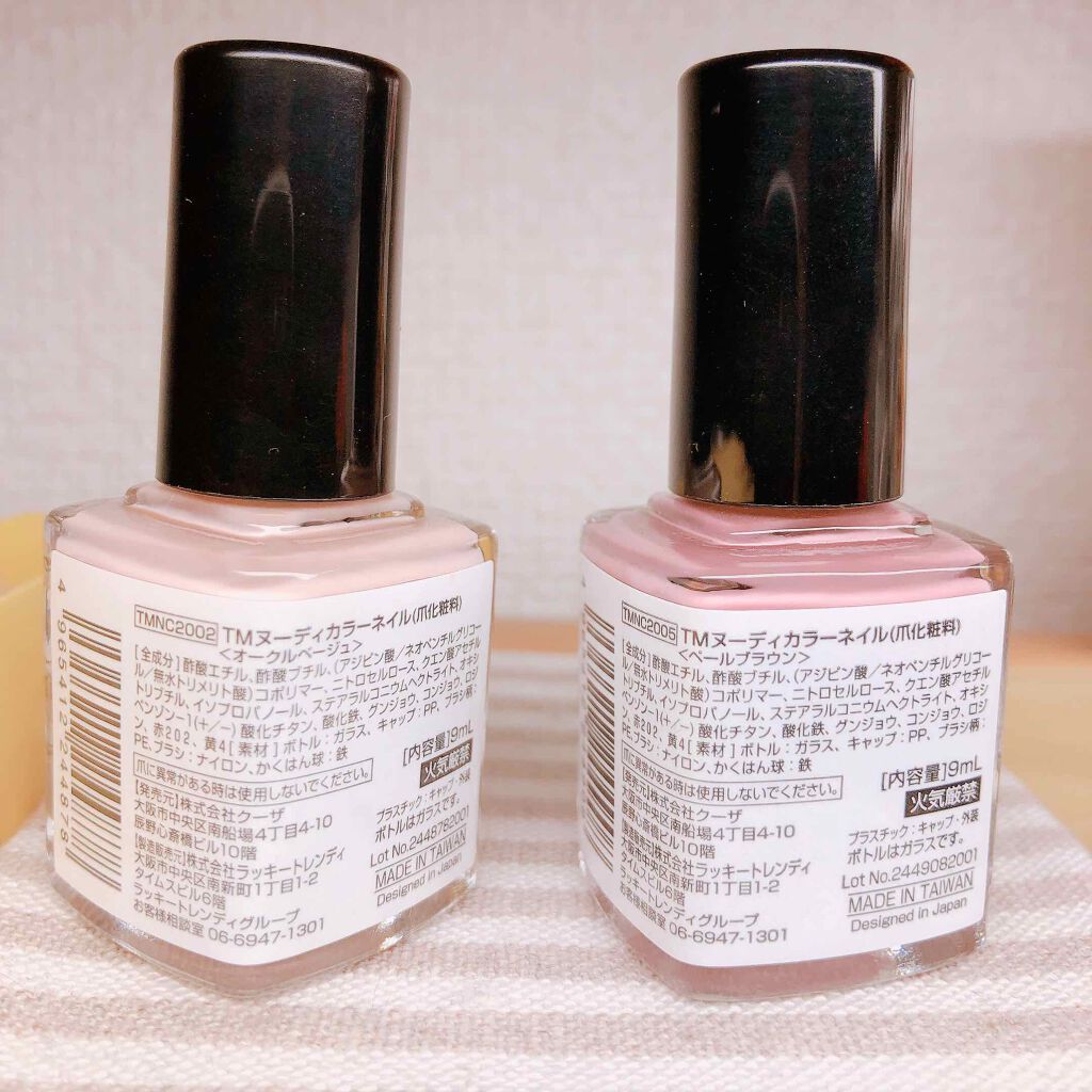 【セリアネイルファンデーション】《TMヌーディカラーネイル》オークルベージュ・肌白めの人にオススメ・薄ーく一度塗りにするとネイルファンデーションになる・肌黒目のひとは白浮きして学校でバレるペールブラウン・肌黒めの人にオススメ・薄ーく一度塗りに...