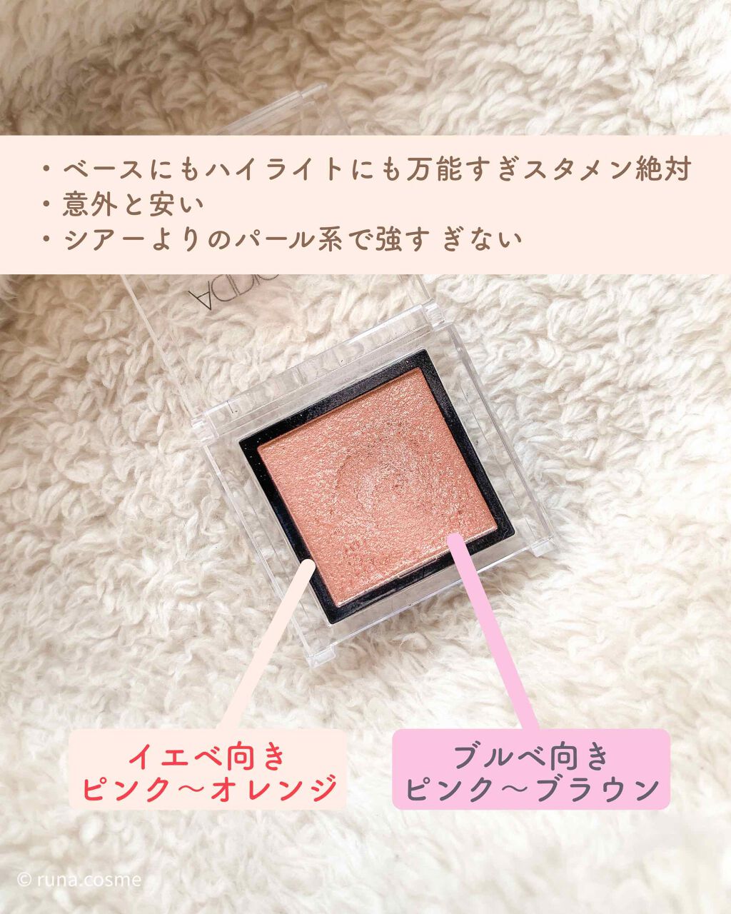 #アディクション#タイニーシェル税抜2,000円これはマストバイ!も〜使い勝手がよすぎる。涙袋使いもいいし、ベースにもいい!指でも良いけど色を強めに出すならスポンジ系で乗せた方がいいかな。パール系のツヤはキレイに夜まで続き...
