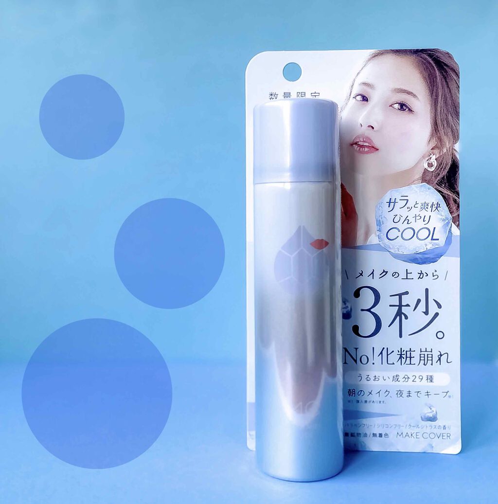 - メイクを長時間カバーするメイクカバリングスプレーのクール版が期間限定で新登場。 メイクの上からサッとスプレーするだけで、素早くお肌をクールダウン。メイクを覆う皮膜成分に加え、保湿成分と皮脂抑制成分を配合。お肌に潤いを与えつつ、汗・乾燥・皮脂などによるメイク崩れの原因を素早くブロックします。お肌への負担を考えたノンシリコンスプレーです。