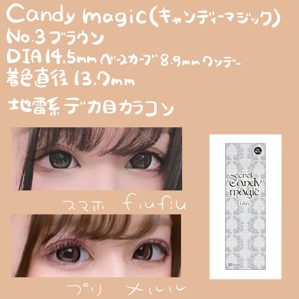 \ラメがキラキラで可愛すぎる♡キャンマジ新作/🛒キャンマジシークレットキャンディーマジック使用期限:1日枚数:1箱20枚入DIA(直径):14.5mm着色直径:14.0mm(体感13.8mm)BC(ベースカーブ):8.6mm含水率:58%度数...