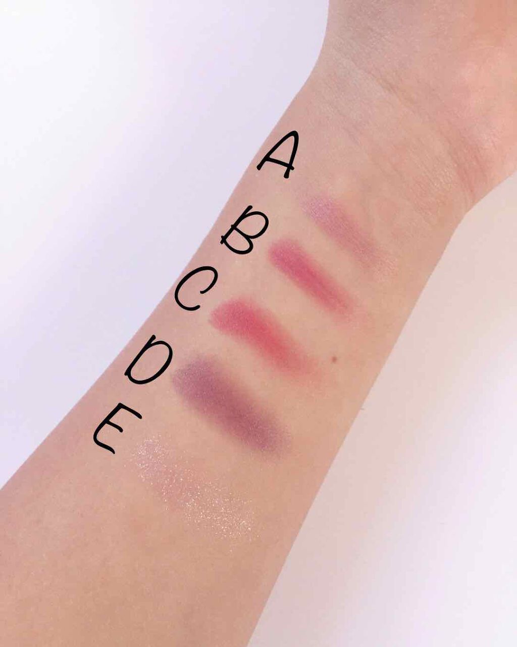 - ラメ・パールは控えめ、しっとり密着して高発色の5色アイシャドウ。1色は上からトッピングできるラメパウダー。ナチュラルスタイルと華やかスタイルを2パターン楽しめるカラーバリエーションです。