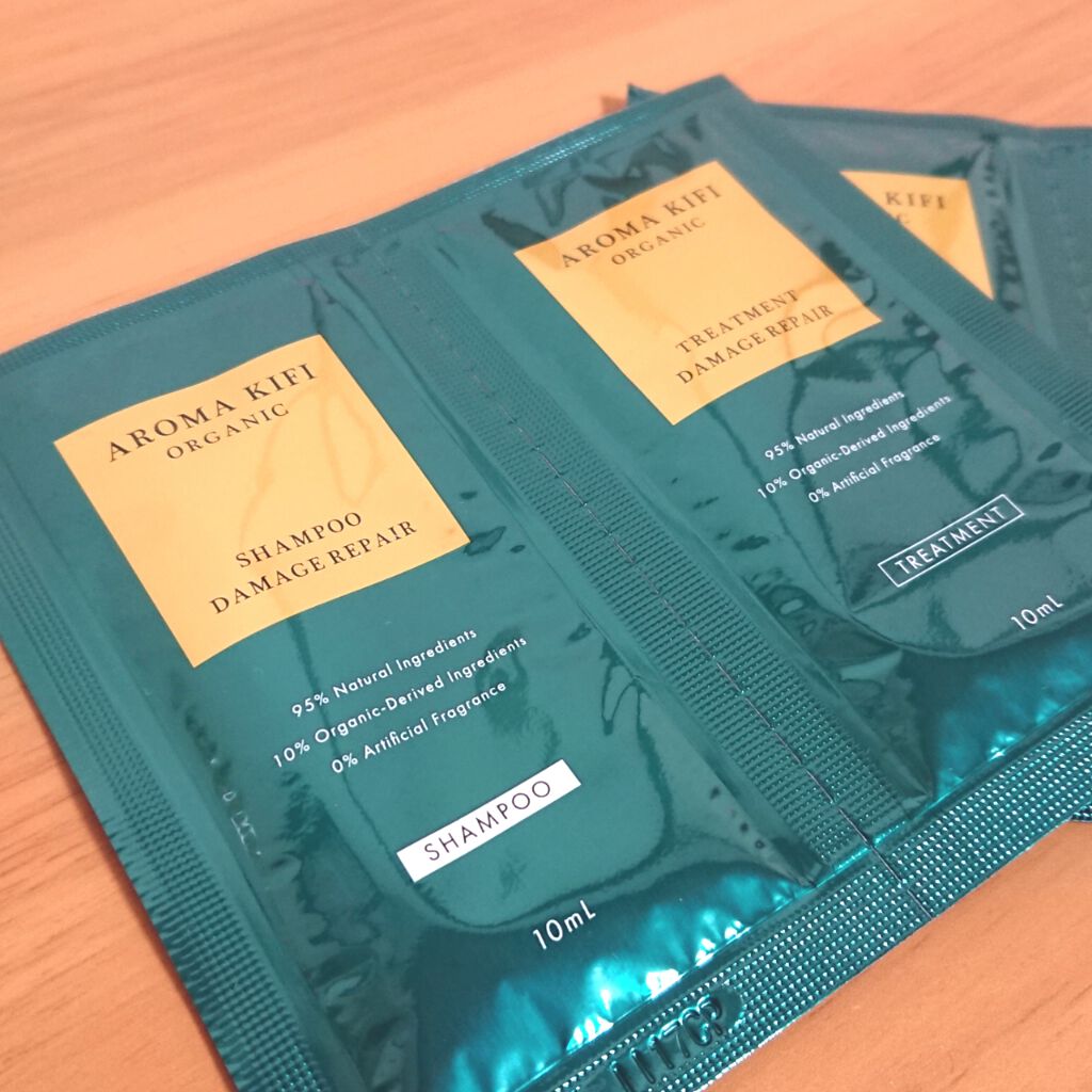 AROMAKIFIオーガニックシャンプー/トリートメント<モイストシャイン>サンプル❤️シャンプー香り いい香りです(o^^o)ハーブ🌿 ジンジャーかな?独特な香りです 爽やか泡立ちよかったですテクスチャーは液状です❤️トリートメント香り ハ...