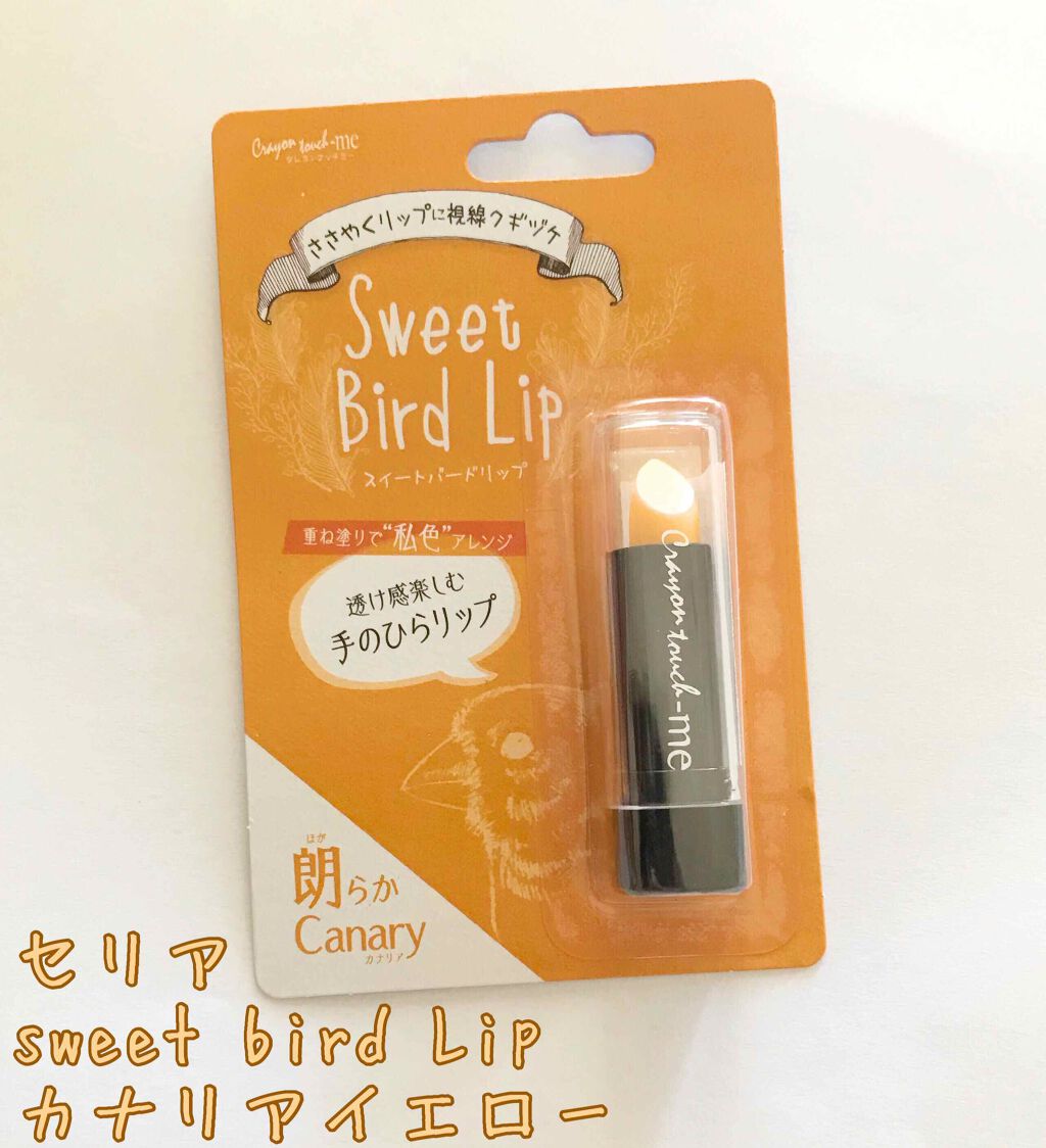 🎀TMスイートバードリップ1905カナリアイエロー小さめサイズのミニリップ。するする塗れる。一度塗りでかなり高発色だけど唇に乗せると透け感があるので濃さの調節はできそう。ツヤツヤしてて潤いもあり。これ一本で使うのは難しそうと思ってたけどこれは...
