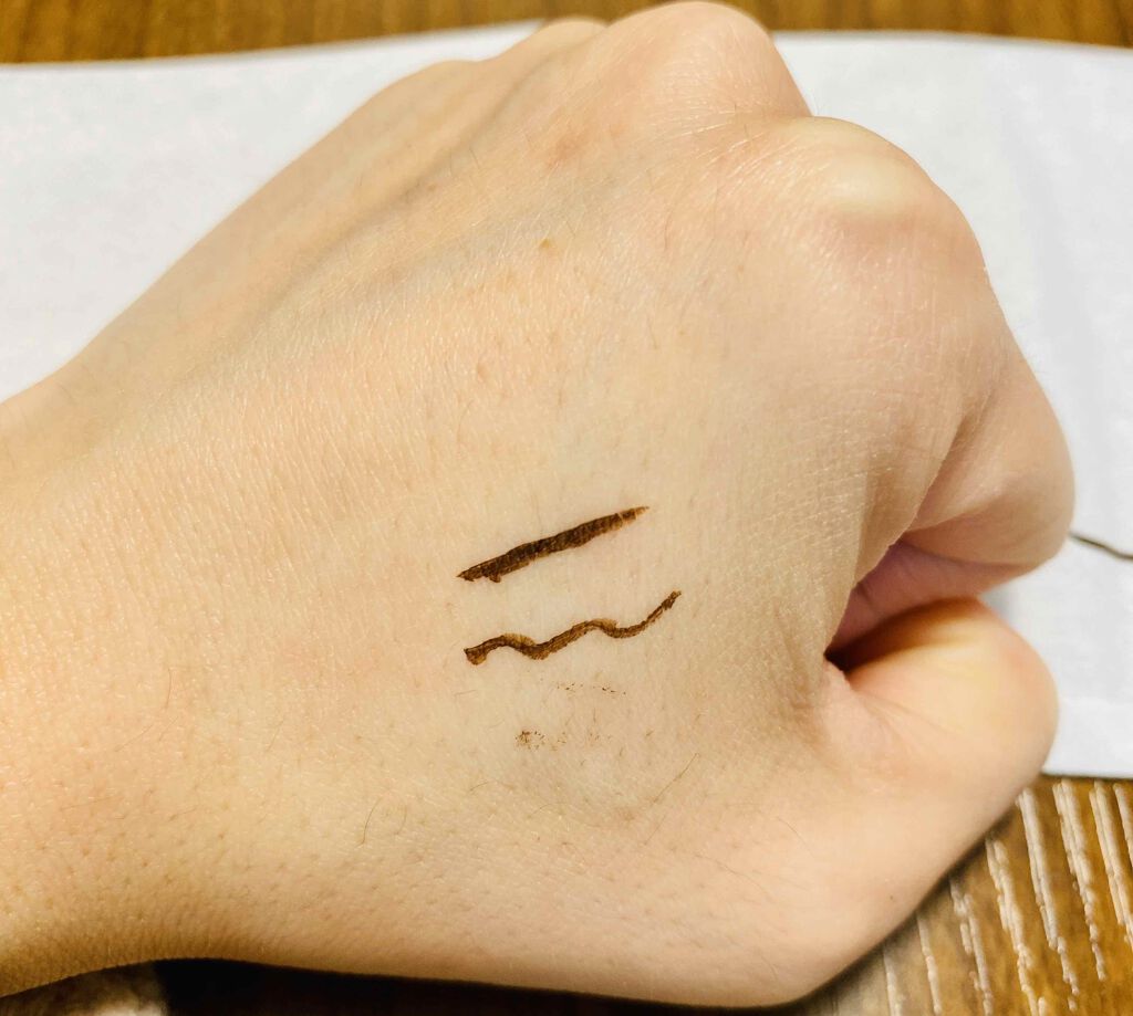 ドーリーウインクマイベストライナー✨絶妙なピンクブラウン🥺筆もコシがあり細すぎず太すぎず凄く描きやすいです。乾きもはやくヨレにくくとてもにじみくいです。手にテスターして指や爪で擦っても落ちなかったです☺️しかもウォータープルーフ🏊🏄👙年中通し...