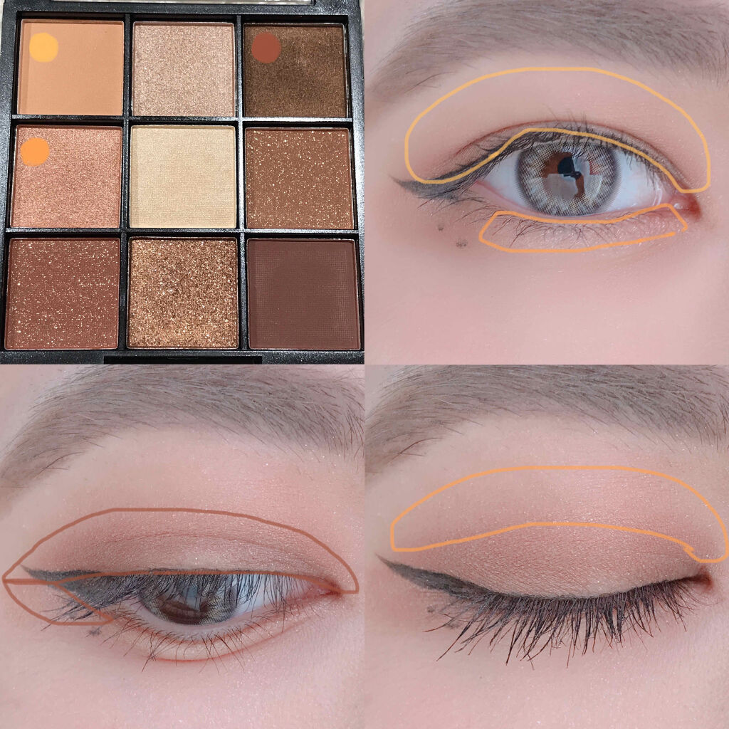 今回使用したもの👇🏻・URGLAMBLOOMINGEYECOLORPALETTE01¥110メイク方法👇🏻①を指でアイホール全体に塗る。↓②を二重幅に目尻がだんだん濃くなるように、筆で広めに塗る。↓③を目のキワと下まぶたの三角ゾーンにチップで...