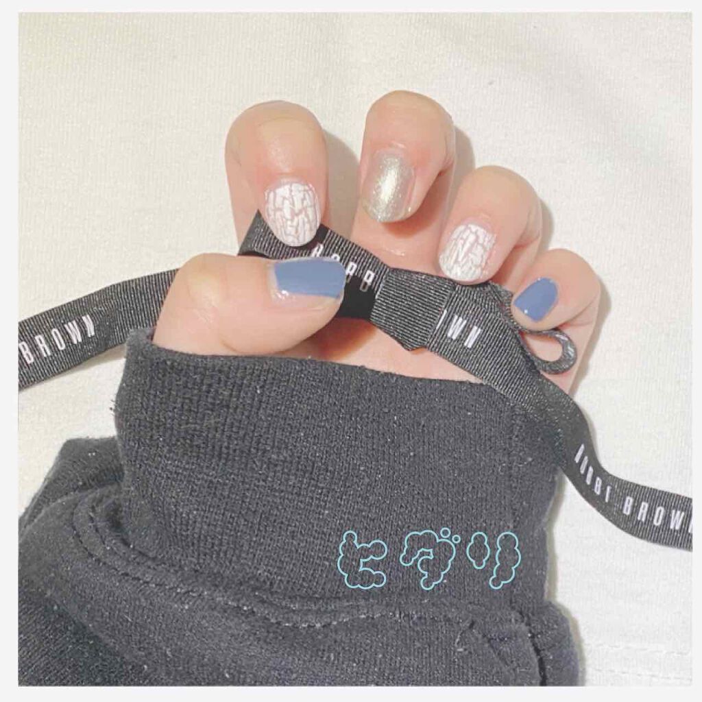 キャンメイクカラフルネイルズ N29ミルクシロップ N82クラウドレススカイ 親指、人差し指、小指は爪先にSV082で細いラインを描き、中指、薬指はAA225を重ねました。 ベースコート、トップコートはネイルホリックのものを使っています。