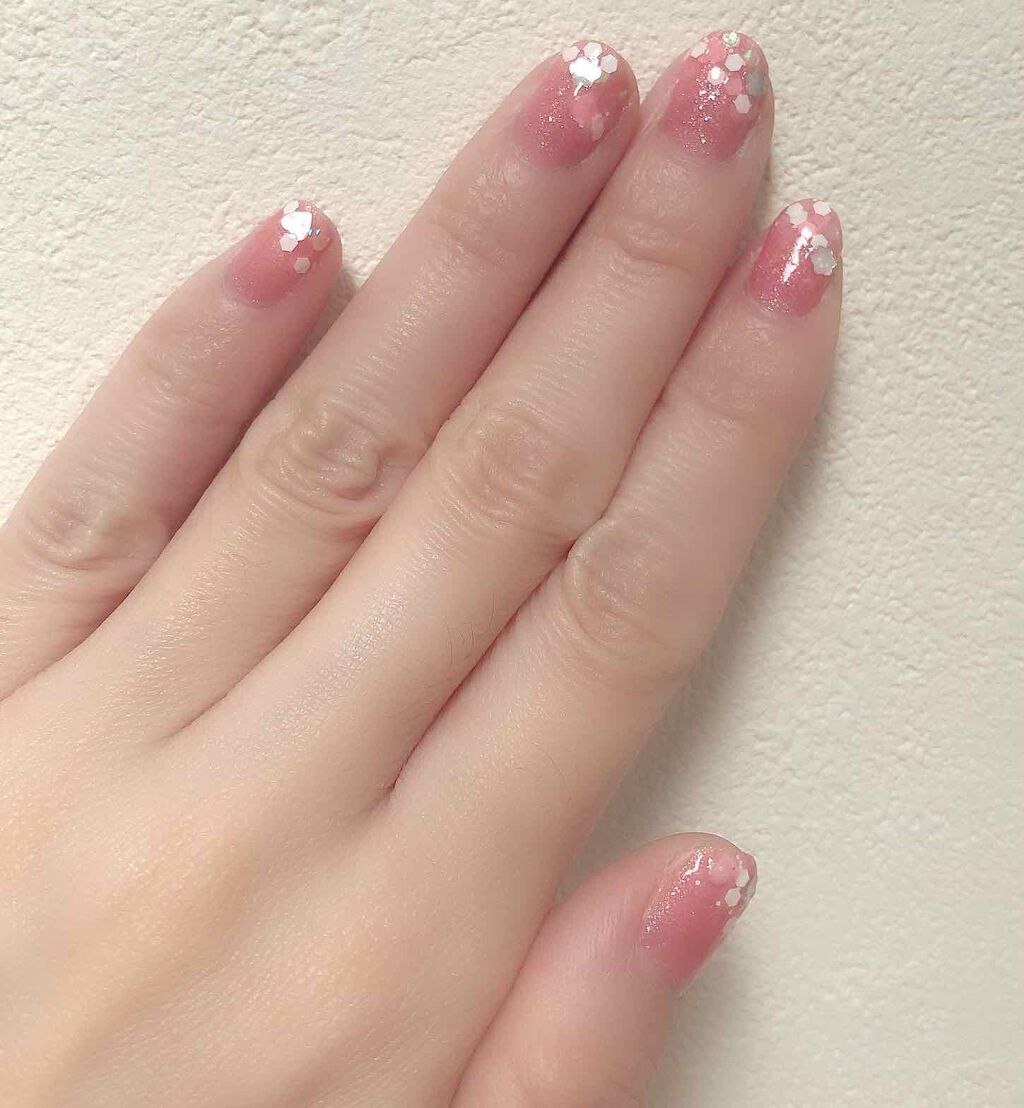 あやかちゃん〜❤ お花のラメが可愛すぎる…!! 桜が想像できるね〜🌸🍃 春が楽しみだな〜!!!
