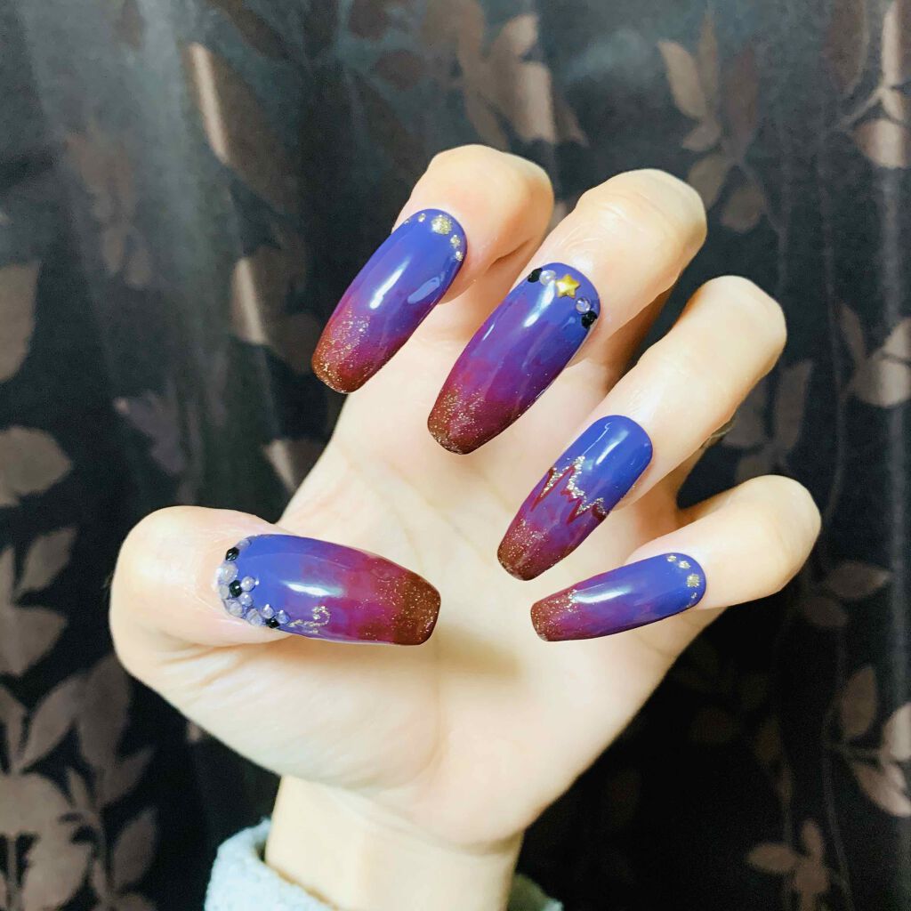 すっごい雑なんだけどハリーポッターのレイブンクローの服に合わせて塗り塗りした時のやつ(∩∀`*)真っ直ぐの線ってすごい手がプルプルするよね:(˙꒳˙):w#homei#ホメイ#ウィークリージェル#ジェルネイル#ハリーポッター#レイブンクロー...