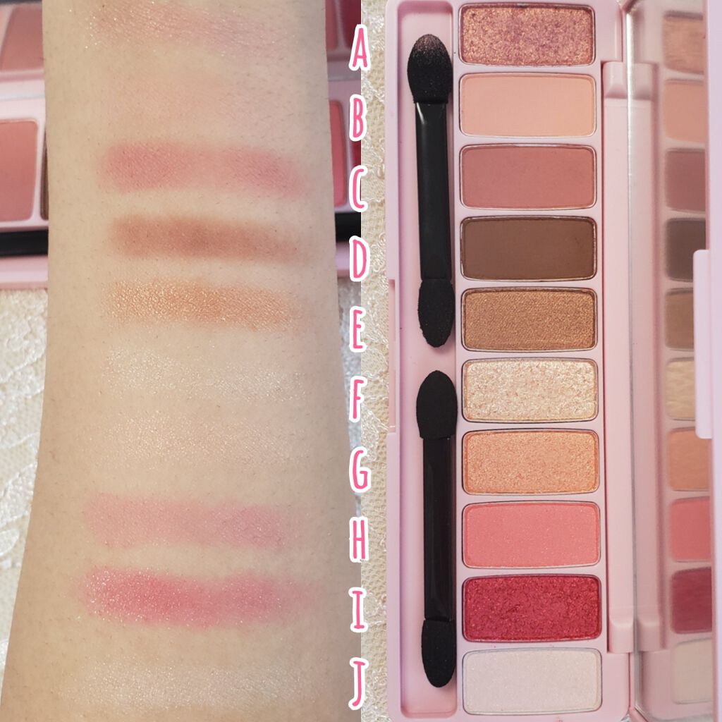 - 肌なじみの良い、鮮やかな発色で目元を華やかに彩る捨て色なしの10色アイシャドウパレット 異なる3種のテクスチャーを自由に組み合わせて、グラデーションも思いのままに。 NEW 2023.4 ・肌トーンにあう配色を詰め込んだトレンドカラー 肌トーンに合わせて、自分に似合うトレンドカラーが楽しめる♡ パーソナルカラー×トレンドカラーの掛け合わせパレットで、デイリーメイクもスペシャルメイクも気分にあわせてなりたい自分に! ・むにゅっとジェル質感ラメで高密着、煌めく目元 パレットの中でもポイントとなる大きめ粒子のラメは、ジェルのような新質感で落ちにくく肌にぴったりと密着します。キラキラとした目元をキープします。 ・使うカラーは大きめに!リアル捨て色なしパレット ベースやラメのよく使うカラーと締め色や濃い色等の減りが少ないカラーを異なるサイズで詰め込んだ、リアル捨て色なしパレット! <使用方法> 付属のデュアルシャドウブラシでベースカラーをまぶた全体に塗り広げます。細いブラシでグラデーションや目尻、アイライン、涙袋などのポイントカラーをのせて仕上げます。