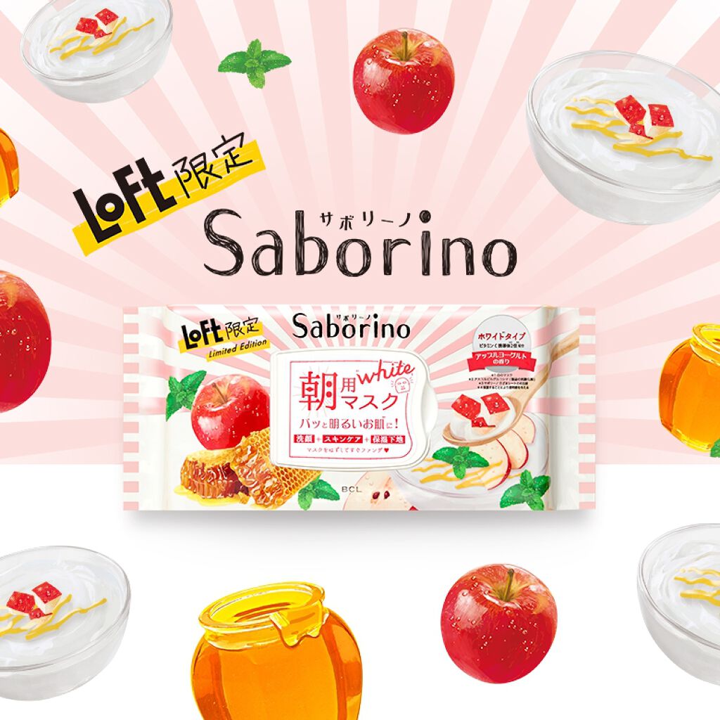 - 寝起き肌にそのまま貼るだけでOKのオールインワンマスク「サボリーノ 目ざまシート」に、LOFT限定「アップルヨーグルトの香り」が登場。 眠くてサボりたい朝も、洗顔からスキンケア、下地まで、これ一枚60秒で完了。 簡単なのにしっかりお手入れで潤って、化粧ノリの良い肌に! はがす時にサッと拭きとるだけで、余分な角質と汚れも一緒に絡めとります。 ■フルーツ・植物エキスに加え、ビタミンC誘導体が透明感をアップします。 ■ホワイトタイプ