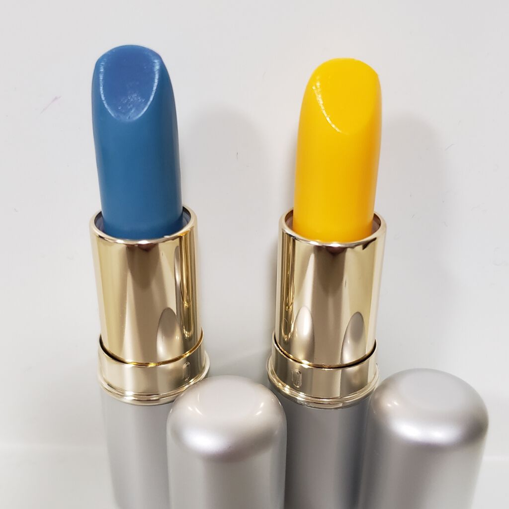 全体的にお前正気か!?となる色ばかり。こんなの使うとか気が狂っとる! まずは色。公式の見本を見たら、色変わってもこれはねぇよ!?みたいな感じになってるけれど、真っ当な色にちゃんとなります(私の場合は)緑はピンクに、青は明るいローズカラー。発色強めで濃いから秋冬に合うよ。 そして、驚いたのが脅威の色持ち具合。腕に塗って色の変色をキャッキャ(ت)ウホホと遊んで、そのまま風呂に行ったのですが、シャワー浴びーの湯船ドボンしてダラーーっとしても色がほんのり残ってくれている。えっ怖…… というわけで口紅としては色持ちは優秀なんだけど、残念な事にとにかく乾く!ここがダメなところ。ちょっと困りますよお客さん! 全体的に実用性のあるお遊びリップという印象。 あ、ちゃんとしたリップも普通に売っております。しかも「えぇ…」と迷うくらいの豊富な色展開。ポルトA、全体的にブルベに優しいな。( ᾥ ︎🫶🏻)𝑩𝑰𝑮 𝑳𝑶𝑽𝑬───