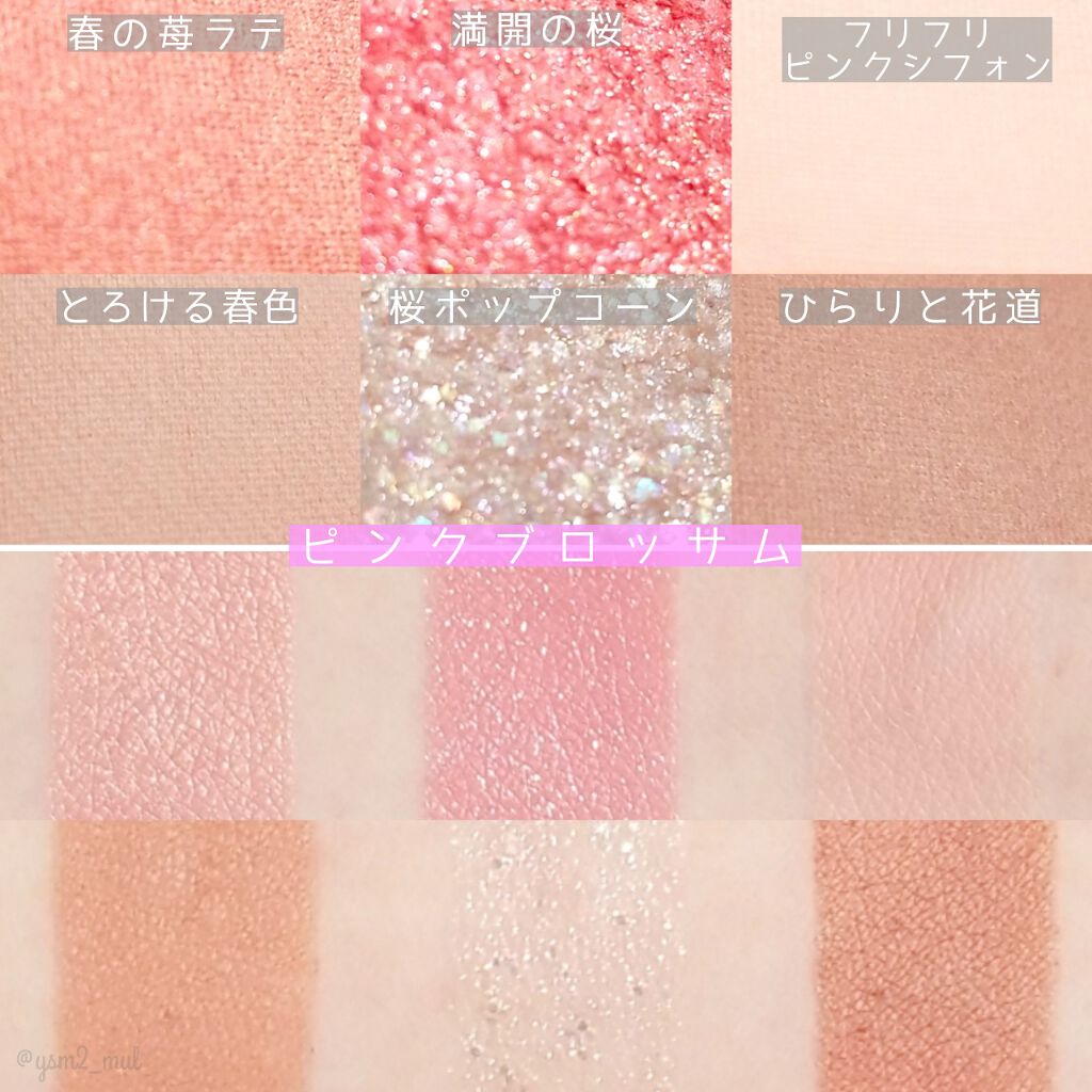 - 思い出彩る、桜色にときめく目元!親友のように相性ぴったりな組み合わせの6色入りアイシャドウパレット。(※チップ付き) ■春を迎えるハートを表すアイシャドウパレット あたたかな春の訪れにワクワクしたり、新しい出会いにドキドキしたり、春を迎える様々な気持ちを自由に表現する6色入りアイシャドウパレット。 満開の桜のように愛らしい目元から深みのある大人っぽい目元まで、4種類のアイシャドウパレットからあなたの『春』に合うカラーが選べます。 ■親友のように相性ぴったりな組み合わせ 深みのあるカラーからパッと鮮やかなカラーまで揃う、親友のように相性ぴったりな6色。 マット・シマー・ラメの異なるテクスチャーを組み合わせて、なめらかなグラデーションや心躍る煌めきが楽しめます。 大切な誰かと満開の桜が見に行きたくなる!