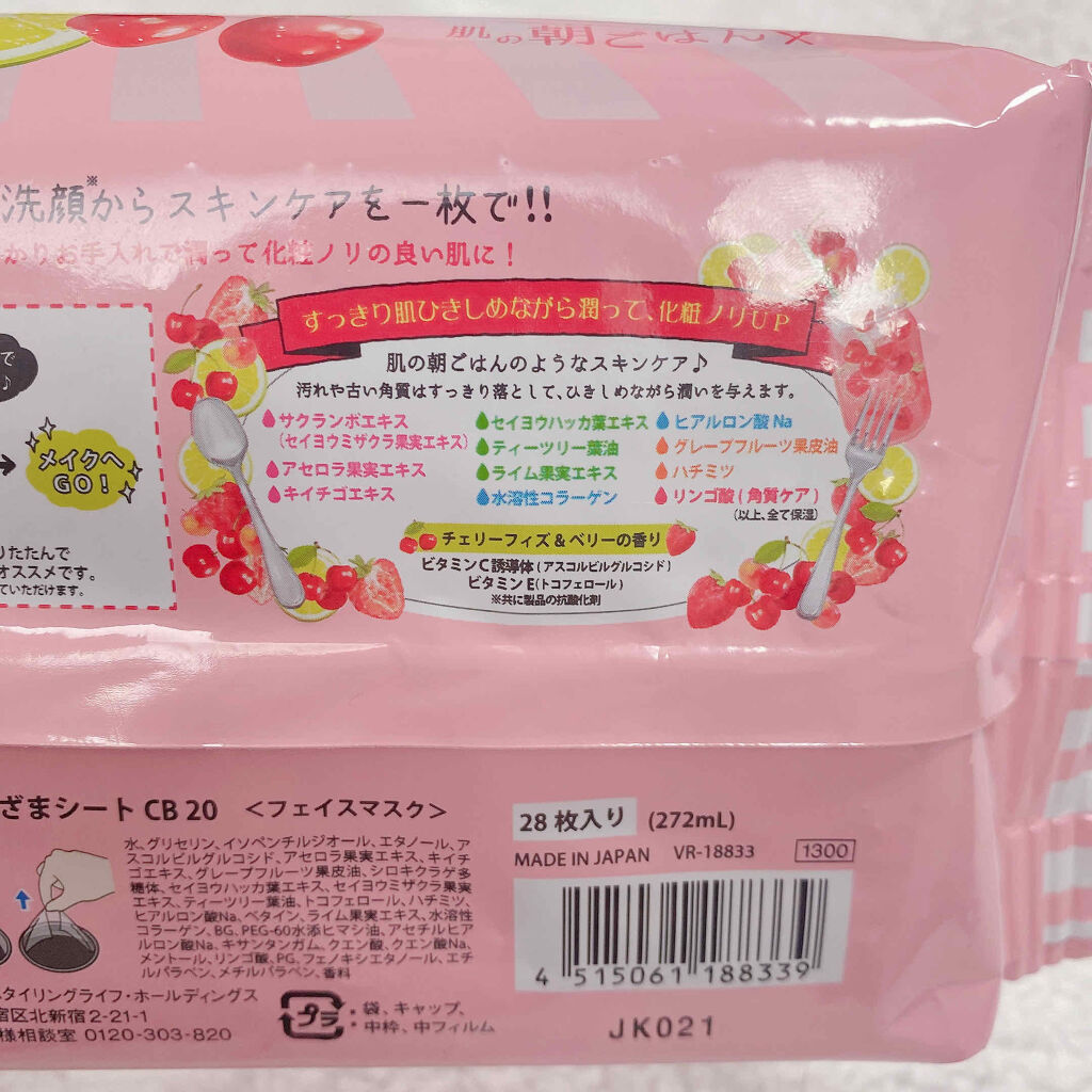 - 限定発売 寝起き肌にそのまま貼るだけでOKのオールインワンマスク「サボリーノ 目ざまシート」に、PLAZA、MINiPLA限定「チェリーフィズ&ベリーの香り」が登場。 眠くてサボりたい朝も、洗顔からスキンケア、下地まで、これ一枚60秒で完了。 簡単なのにしっかりお手入れで潤って、化粧ノリの良い肌に! はがす時にサッと拭きとるだけで、余分な角質と汚れも一緒に絡めとります。 ■キイチゴ、サクランボ、アセロラなどフレッシュでジューシーな果実エキスを配合 ■しっとりタイプ ■メントール感やや弱め