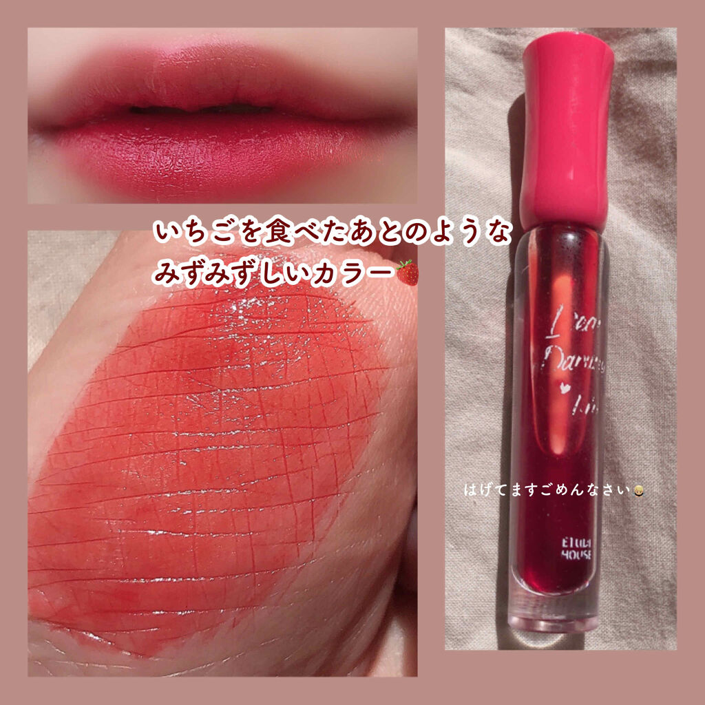 エチュードディアダーリンウォータージェルティントカラーPK004アズキバーアイスバーをモチーフとしたパッケージが可愛くて購入♪フルーツ系の甘い香りがするの🥰色味はピンクパープルのような落ち着いたピンクで、付けた時に色味のギャップがない仕上がり...