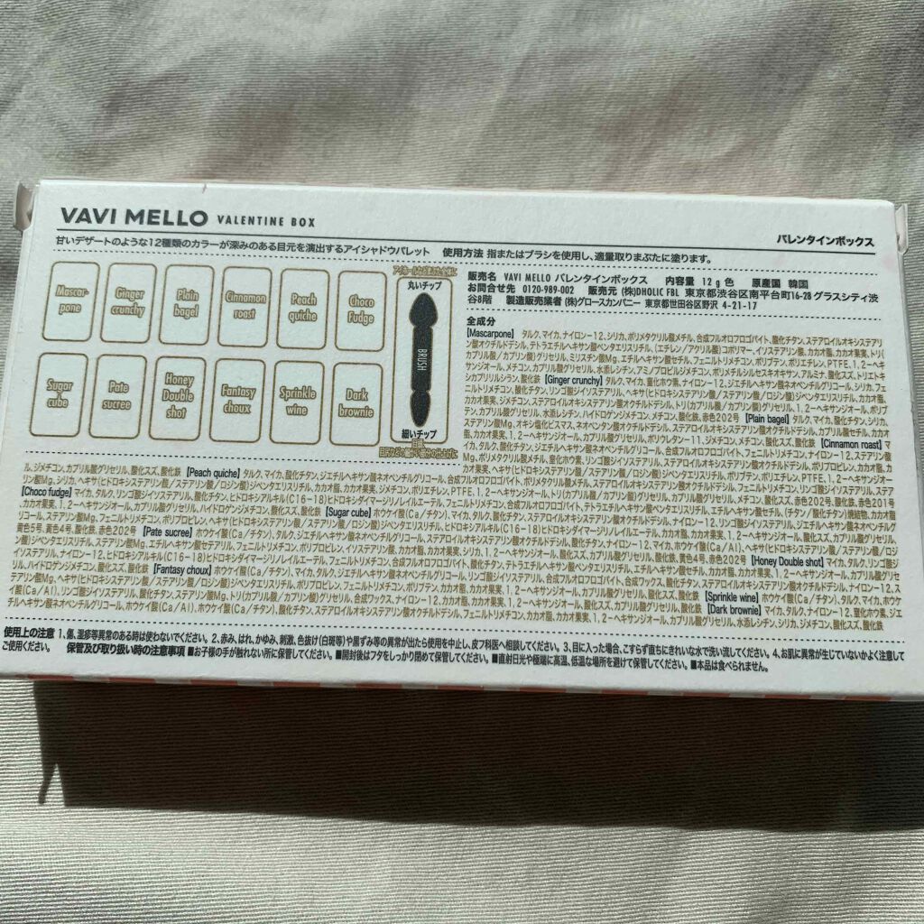 こんにちは!あーたんです!今回紹介するのはVAVIMELLOのバレンタインボックスです!商品説明「1秒ひと塗りまぶた」を実現する高発色アイシャドウパレットです。マスカルポーネ、ジンジャークランチ、チョコファッジなど、デザートをイメージした12...