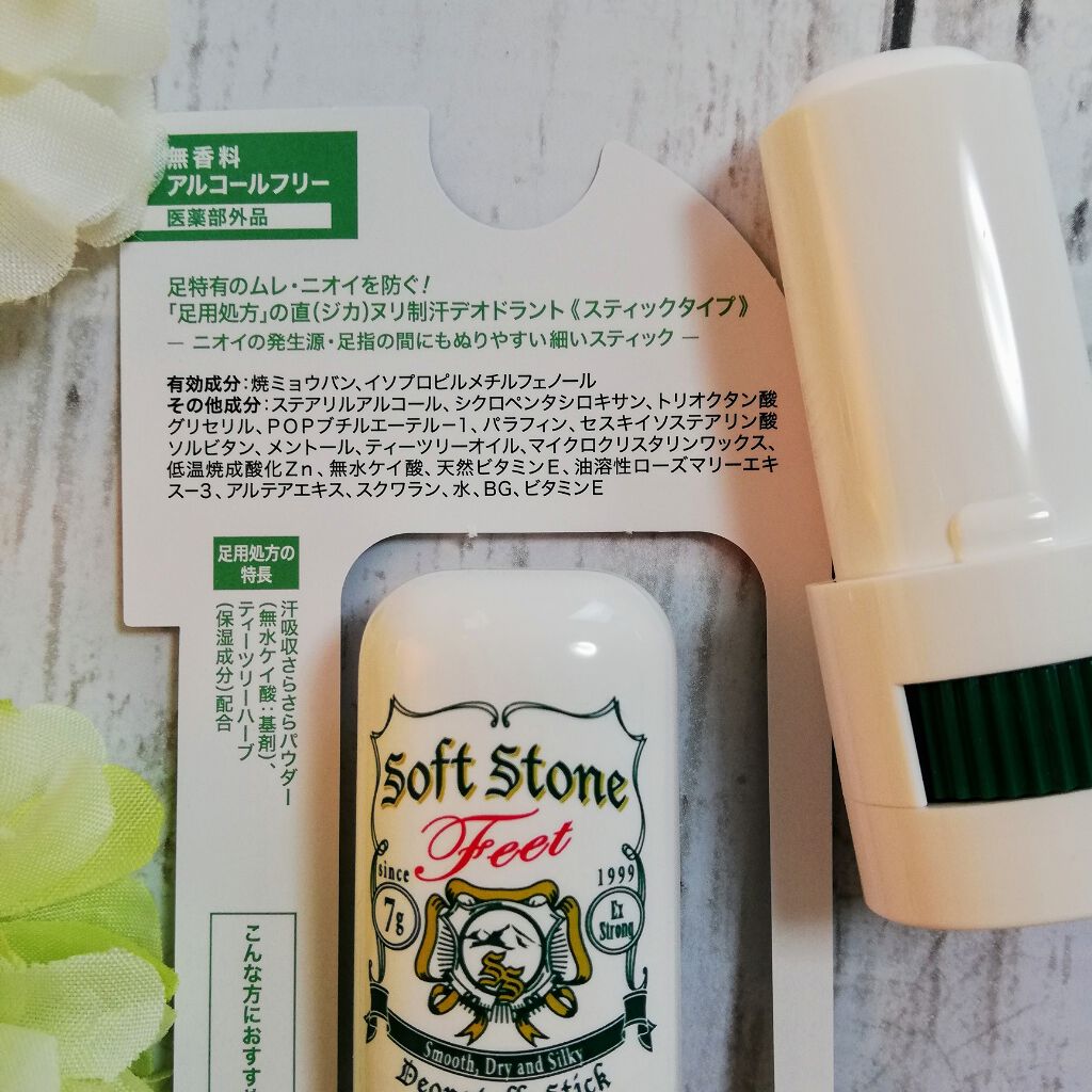 - <7g> 有効成分:焼ミョウバン、イソプロピルメチルフェノール その他成分:ステアリルアルコール、シクロペンタシロキサン、トリオクタン酸グリセリル、POPブチルエーテル-1、パラフィン、セスキイソステアリン酸ソルビタン、メントール、ティーツリーオイル、マイクロクリスタリンワックス、低温焼成酸化Zn、無水ケイ酸、天然ビタミンE、油溶性ローズマリーエキス-3、アルテアエキス、スクワラン、水、BG、ビタミンE