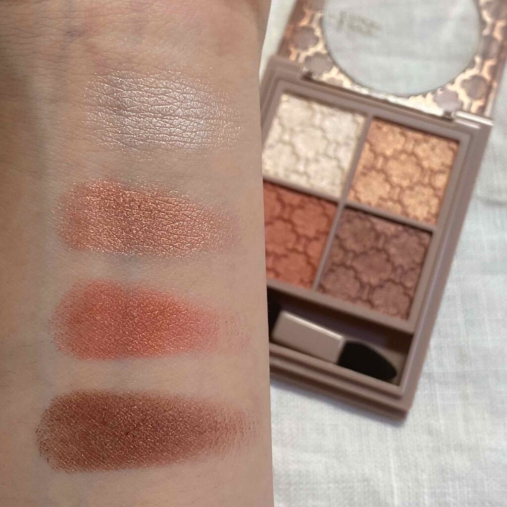 - 上質なツヤめきとクリアな発色がとけこみ、大人のうるみ目を叶える4 色セットアイカラーです。 しっとりタッチのクリーミィベース×3 色のグラデーションカラーで印象的な目もとに仕上げます。 美容液成分配合。メイクしながらうるおいを保ちます。 無香料 美容液成分〔ヒアルロン酸・スクワラン〕(保湿)