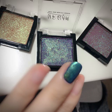 概念オクタネイル夏!って感じなのでこれからにオススメ。概念で攻めたのでアンモナイト的なシールとかはらなかったけど、持ってる人は貼っても良いかも。親指はちょっとモネな感じで海の色とかクラッシュホロとかをガチャガチャつめたニュアンスネイル。中指は...