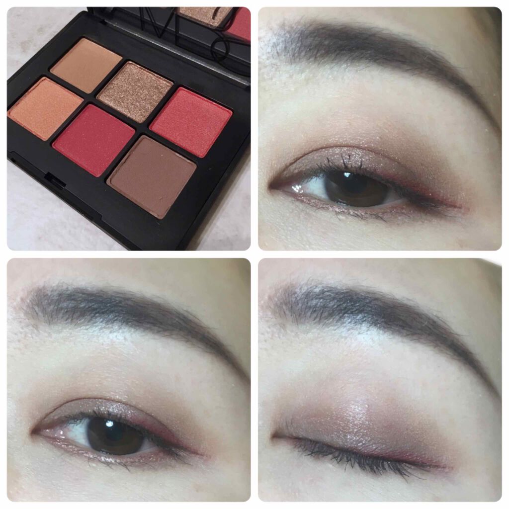 本日のアイシャドウ♡#NARS#ヴォワヤジュールアイシャドウパレット1192右下の赤みカラーを二重幅まで上段の左側と、真ん中をまぶたに。右上のブラウンを締色として目尻に。少し暗めなカラーに見えますが、上段の左側ラメがめっちゃキレイで、明るくキ...