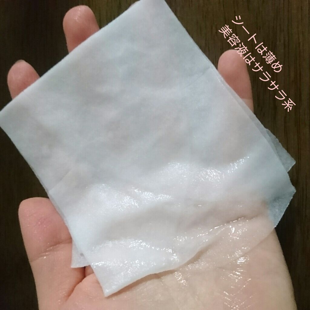 | シート素材は柔らかく厚みがあり、とろみ強めの美容液が 染み込んでて、とろみが乗っかってる感じ。 | 詳細を見る |