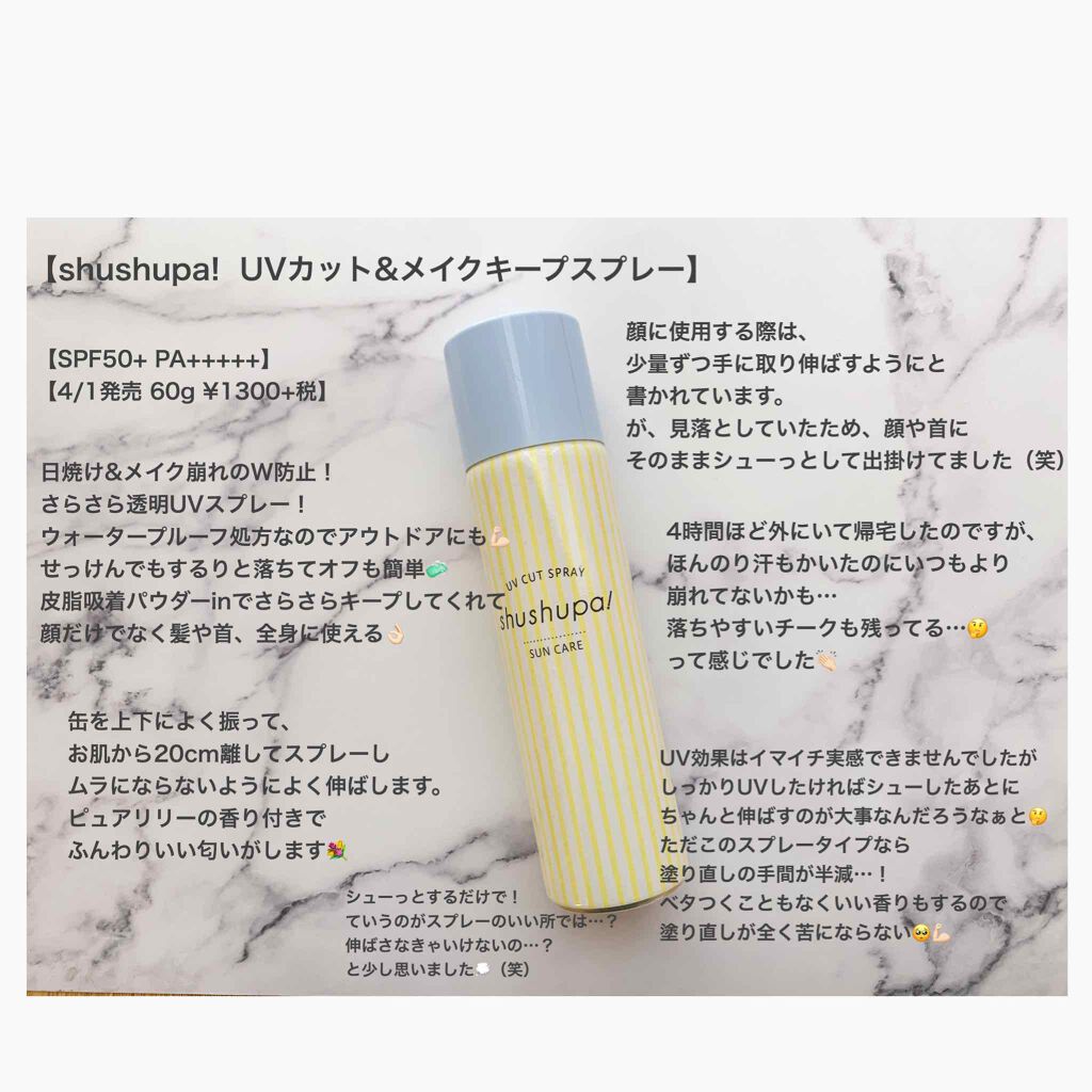 めちゃくちゃお気に入りで3本目リピート中のshushupa!のUVカットメイクキープスプレー+!最近店頭で見かけなくなってしまって別の商品を使ってみたりしたけど、やっぱりこれがよくて楽天でまとめ買い購入💰さらっとしていてベタつかないところと、...