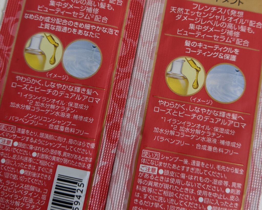 - 濃密アロマシャンプーで、ダメージレベルの高い髪も集中ダメージ補修 100%天然エッセンシャルオイル(*1)配合 Wダメージケアシステムで、傷んだ髪のキューティクルを整え、内側から輝く髪へ 夜のバスタイムと朝目覚めたときで香りが変わる ローズとピーチのデュアルアロマ 日々の贅沢なリラクゼーションを演出します *1 イランイランオイル:保湿成分