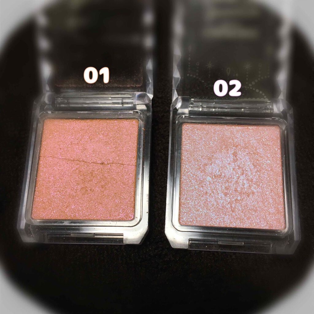 オーロラ色の細かいラメが輝きます。二重幅にもたまりにくいです。01オレンジベースにピンクラメ02ピンクベースにブルーラメ...