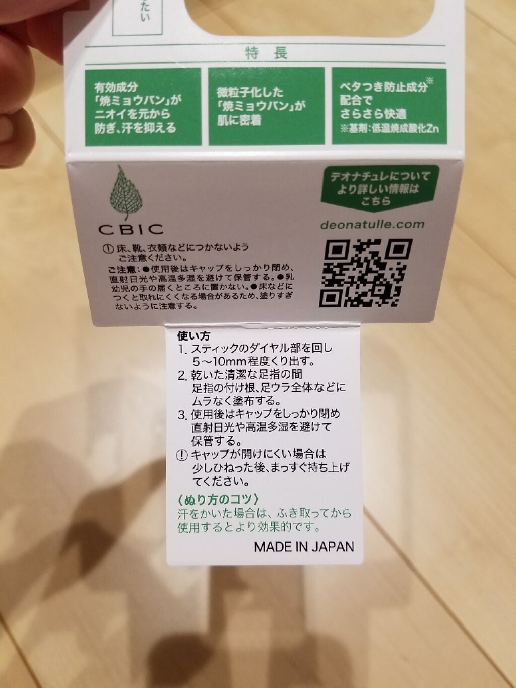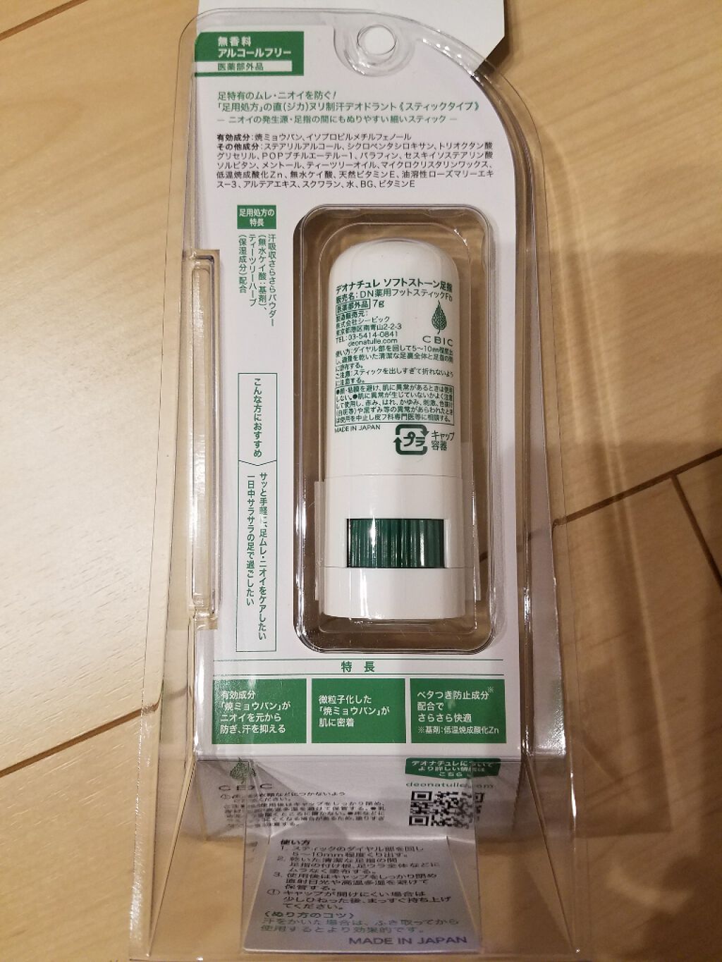 - \11年間ず~っと売上No.1*直ヌリ制汗デオドラントブランド/ 『防臭力のデオナチュレ』シリーズから、足特有のムレ・ニオイを防ぐ足用処方 足用制汗剤 直ヌリスティック・無香料 ◆◆靴、脱ぐの⁈とドキッとすること、ありませんか?◆◆ 足は1日コップ約1杯分の汗をかく!だから、デオナチュレの足用でケア ◆◆ユーザーから選ばれる理由◆◆ 1.天然アルム石に着目。有効成分「焼ミョウバン」を配合し、汗・ニオイを元から防ぐ! さらに、足汗吸収パウダー**やティーツリーハーブ・ローズマリーエキス***を配合した足用処方 2.足に“直ヌリ”で朝ぬって夜まで続いちゃう! 3.手を汚さず、ニオイの発生源・足指の間も、ベタつく足裏も、手軽にぬれるスティックで、ぬったあとすぐにサラサラ!白残りしにくい ==注意== ●顔・粘膜を避け、除脱毛直後や肌に異常があるときは使用しないでください。●肌に異常が生じていないかよく注意してご使用ください。また、お肌に合わないとき、使用中に赤み、はれ、かゆみ、刺激、色抜け(白班等)や黒ずみ等の異常があらわれたときは、使用を中止し、皮フ科専門医などにご相談ください。●使用後はキャップをしっかり閉め、直射日光や高温多湿を避けて保管してください。●乳幼児の手の届かないところに置いてください。●スティックを出し過ぎて折れないようご注意ください。●床、靴、衣類などにつかないようご注意ください。 販売名:DN薬用フットスティックFb *インテージSRI+直ヌリ制汗剤市場(形状:ロールオン・スティック・クリーム・ジェル・パウダー) 2013年5月~2024年4月 デオナチュレシリーズ 累計販売金額 **基剤:無水ケイ酸 ***保湿成分