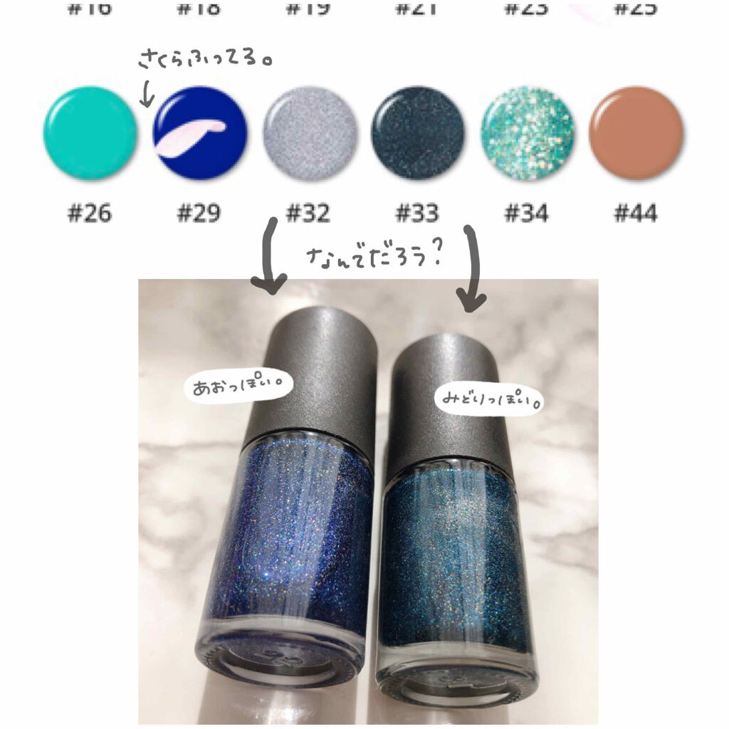 - 成分 [1]酢酸ブチル、酢酸エチル、ニトロセルロース、アジピン酸/ネオペンチルグリコール/無水トリメリット酸共重合体、クエン酸アセチルトリブチル、イソプロピルアルコール、アクリレート共重合体、ステアラルコニウムベントナイト、ブチルアルコール、シリカ、オクトクリレン、二酸化チタン(CI 77891)、スチレン/アクリレート共重合体、ポリビニルブチル、ジベンゾエートトリメチルペンタンジル、黄色203、水酸化アルミニウム、メチコン、赤201、カルシウムパントテ テネイト、カプリル酸/カプリン酸トリグリセリド、アルガン核油 [2]酢酸ブチル、酢酸エチル、ニトロセルロース、クエン酸アセチルトリブチル、アジピン酸/ネオペンチルグリコール/無水トリメリット酸共重合体、イソプロピルアルコール、二酸化チタン(CI 77891)、 アクリレート共重合体、ステアラルコニウムベントナイト、スチレン/アクリレート共重合体、 ブチルアルコール、 オクトクリレン、 シリカ、 赤色201、赤色酸化鉄、 黄色4、 ポリビニルブチル、 ジベンゾエートトリメチルペンタンジイル、 エチルセルロース、 ステアラルコニウムヘクトライト、 カーボンブラック、 パントテン酸カルシウム、 トリグリセリル/カプリン酸、 アルガン核油 、 [4]酢酸ブチル、 酢酸エチル、 ニトロセルロース、 アジピン酸/ネオペンチルグリコール/無水トリメリット酸塩共重合体、 クエン酸アセチルトリブチル、 イソプロピルアルコール、 アクリレート共重合体、 スチレン。 /アクリレーツ共重合体、酢酸ショ糖イソ酪酸塩、ステアラルコニウムベントナイト、シリカジメチルシリル酸塩、ジプロピレングリコールジベンゾエート、二酸化チタン(CI 77891)、オクトクリレン、黄色4、ポリビニルブチル、クエン酸、赤色201、赤色202、ジメチコン、アルガン核油、タンジェリン油、ブチルアルコール、トリメチルシロキシケイ酸塩、パントテン酸 カルシウム[11] 酢酸ブチル、酢酸エチル、ニトロセルロース、クエン酸トリブチル、アジピン酸/ネオペンチルグリコール/無水トリメリット酸共重合体、イソプロピルアルコール、赤色201、アクリレーツ共重合体、スチレン/アクリレーツ共重合体、ステアラルコニウムベントナイト、二酸化チタン(CI 77891)、黄色203、ブチルアルコール、シリカ、オクトクリレン、ポリビニルブチル、ジベンゾエートトリメチルペンタンジイル、カルシウムパン トテン酸、 トリグリセリル/カプリン酸、 アルガン核油 [14]酢酸ブチル、酢酸エチル、ニトロセルロース、 アジチウム酸/ネオペンチルグリコール/無水トリメリット酸共重合体、 クエン酸アセチルトリブチル、 イソプロピルアルコール、 アクリレート共重合体、 スチレン/アクリレート共重合体、 ショ糖酢酸イソ酪酸、 ステアラルコニウムベントナイト、 シリカジメチルシリル酸、 ジプロピレングリコールジベンゾエート、 黄色4、 二酸化チタン(CI 77891)、オクトクリレン、ポリビニルブチルアラル、クエン酸、ジメチコン、アルガン核油、橙油、ブチルアルコール、トリメチルシロキシケイ酸、パントテン酸カルシウム[16]酢酸ブチル、酢酸エチル、ニトロセルロース、アジピン酸/ネオペンチルグリコール/無水トリメリット酸共重合体、イソプロピルアルコール、クエン酸アセチルトリブチル、アクリレーツ共重合体、 チレン/アクリレート共重合体、 スクロースアセテートイソブチレート、 ステアラルコニウムベントナイト、 シリカジメチルシリル酸、 ジプロピレングリコールジベンゾエート、 イエロー4、 オクトクリレン、 二酸化チタン(CI 77891)、 エチルセルロース、 ブルー404、 ポリビニルブチル、 クエン酸、 ジメチコン、 アルガン核油、 タンジェリン油、 ブチルアルコール、 トリメチルシロキシケイ酸塩、 パントテン酸 カルシウム。[18]酢酸ブチル、酢酸エチル、ニトロセルロース、アジピン酸/ネオペンチルグリコール/無水トリメリット酸共重合体、ポリエチレンテレフタレート、シリカジメチルシリル酸塩、イソプロピルアルコール、スチレン/アクリレート共重合体、アクリレート共重合体、ジベンゾエートジプロピレングリコール、ジイソ酪酸トリメチルフェンタニルジイソ酪酸、ホウケイ酸ナトリウムカルシウム、イソブチルフェノキシエポキシ樹脂、オクトクリレン、二酸化チタン(CI 77891)、赤202、 ポリウレタン-11、 アルガン核油、 タンジェリン油、 酸化スズ、 パントテン酸カルシウム [21]酢酸ブチル、 酢酸エチル、 ニトロセルロース、 クエン酸アセチルトリブチル、 アジピン酸/ネオペンチルグリコール/無水トリメリット酸 共重合体、 イソプロピルアルコール、 二酸化チタン(CI 77891)、 アクリレート共重合体、 スチレン/アクリレート共重合体、 ステアラルコニウムベントナイト、 ブチルアルコール、 シリカ、 オクトクリレン、 ポリビニルブチラール、トリメチルペンタンジイルジベンゾエート、 パントテン酸カルシウム、 トリグリセリル酸カ