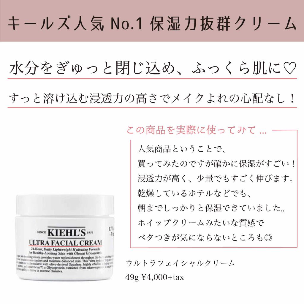 ✨✨一日中続く潤いを!!4秒に1個売れてる名品クリーム✨✨✔︎キールズクリームUFC49g4620円(税込) @kiehlsjpこちらのクリームはキールズの製品の中でもとっても人気の保湿感クリームです😉長時間潤いを持続して乾燥トラブルか...