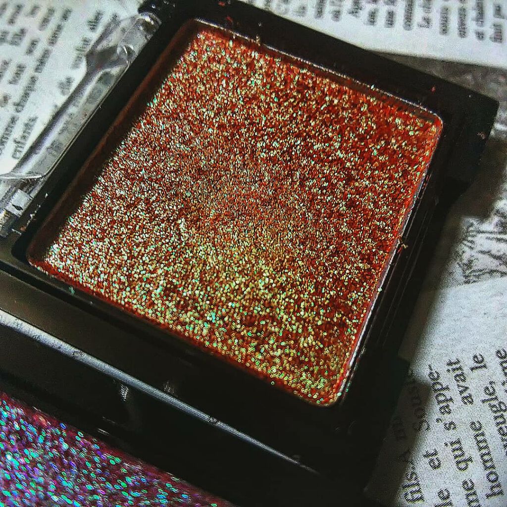 UR GLAMの単色アイシャドウ一時期めっちゃハマってダイソーに行っては買いダイソーに行っては買いっていうのしてた😶 このシャドウは偏光ラメ的な存在で光加減でピンクに見えたり青っぽく見えたりして面白い いい意味でこれが100均で購入出来るのはいいなと思った💭