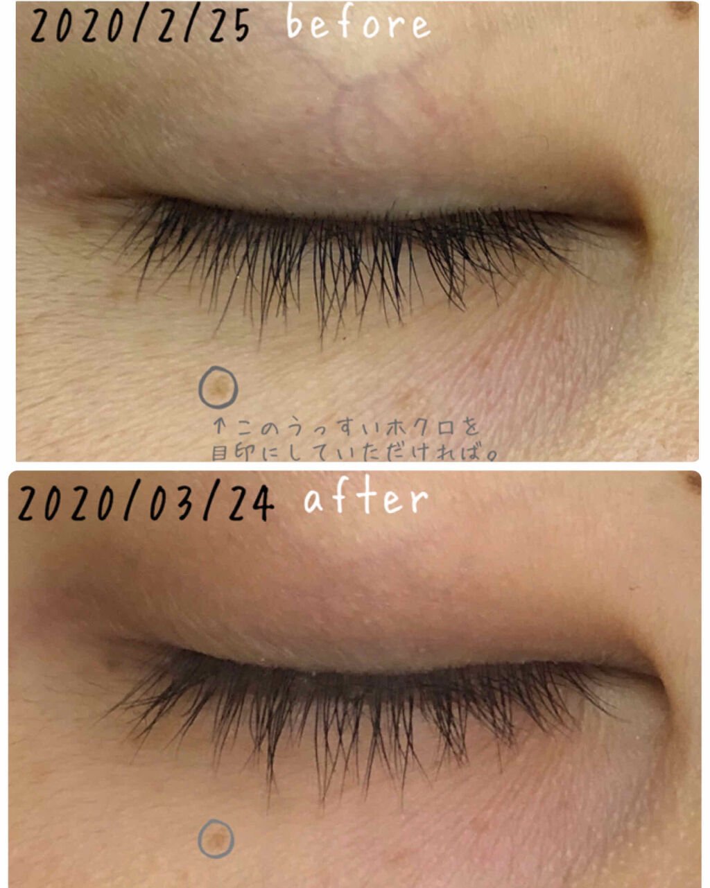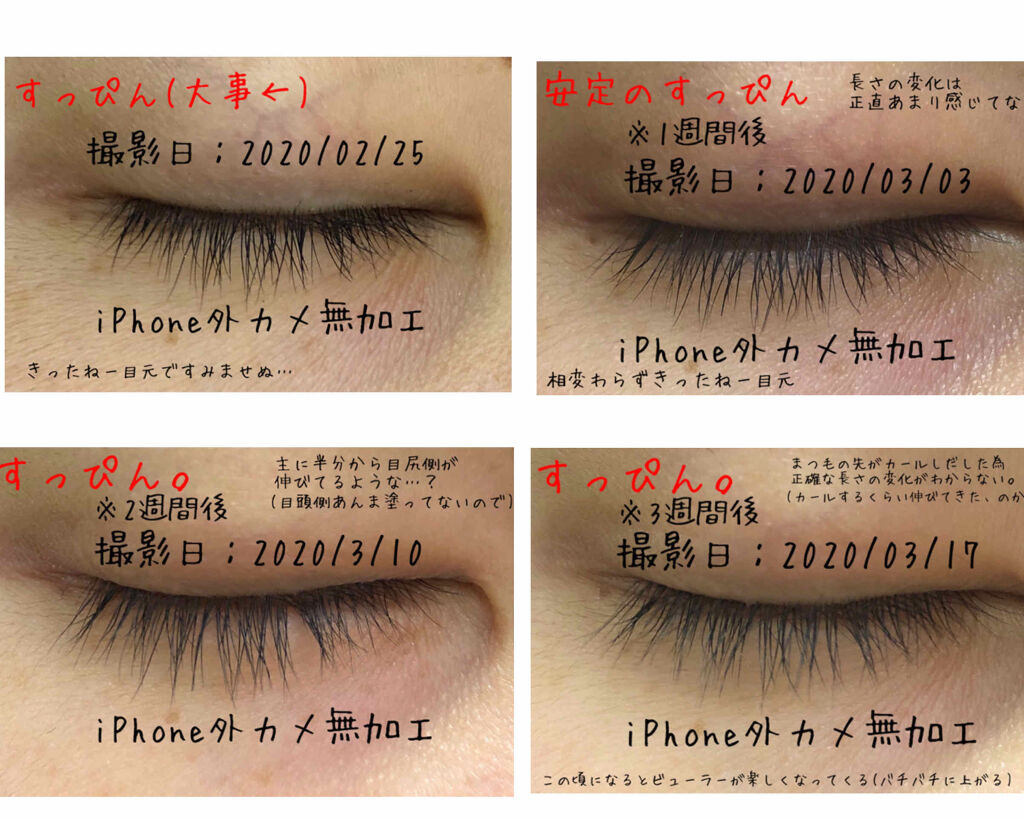 まつ毛めちゃくちゃ伸びてます🤗 使いはじめと比べるとすごくない?? 目尻のまつ毛が編集のフレーム枠に収まらないくらい成長してる🤭 1本1本がしっかりしてきたから密度が濃くなった?
