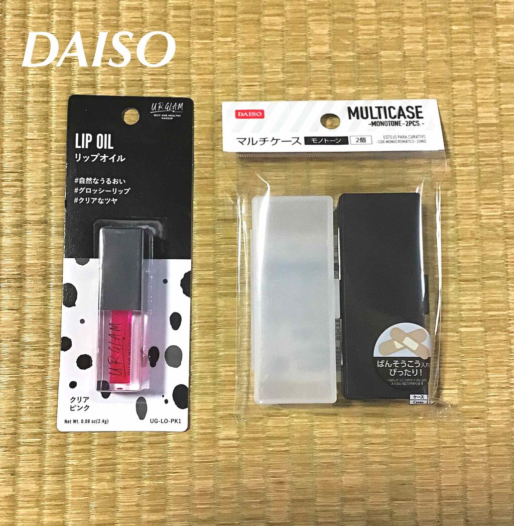 DAISOのURGLAMのリップオイル色はピンクブラウンを買いました2枚目の色な感じ画像汚いね万人受けしそうな印象匂いはあんまりしない見た目より結構内容量もあった見た目もかわいいのでオススメかな...