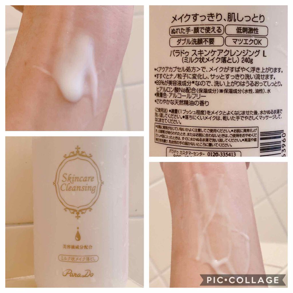 パラドゥ様のプレゼントキャンペーンでスキンケアクレンジングL当選しました🎉ミルク状メイク落としです。メイク落としの種類って沢山あるけど、私はミルクタイプが一番好きです❤肌に優しい感じがする。これスキンケアクレンジングってなってる‼...