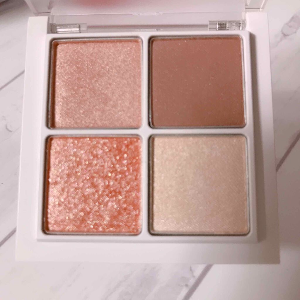左上のカラー絶妙なピンクブラウンで万能すぎる!二重幅より上に塗ると目元がパッと明るくなります!これほんとかわいい!マットカラーなので眉毛にもいける!! 右上のカラーマットなブラウンカラー濃く見えるけど塗るとそうでもないです!ライナーとして塗るのも二重幅に塗るのも目尻に塗るのもかわいい!! 左下のカラーゴールドのラメ!ゴールドゴールドしてないので使いやすいし大粒すぎないのがとっても上品!私正直ゴールドラメ苦手ですが、ほんと派手なわけじゃないので使いやすい!涙袋に入れても違和感なしでした!! 右下のカラー唯一バームタイプのカラー元々あまり発色しないみたいですが色黒の私には全く発色せず、ただツヤはすごく出るのでハイライトとして使うのがいいのかなーと思いました!